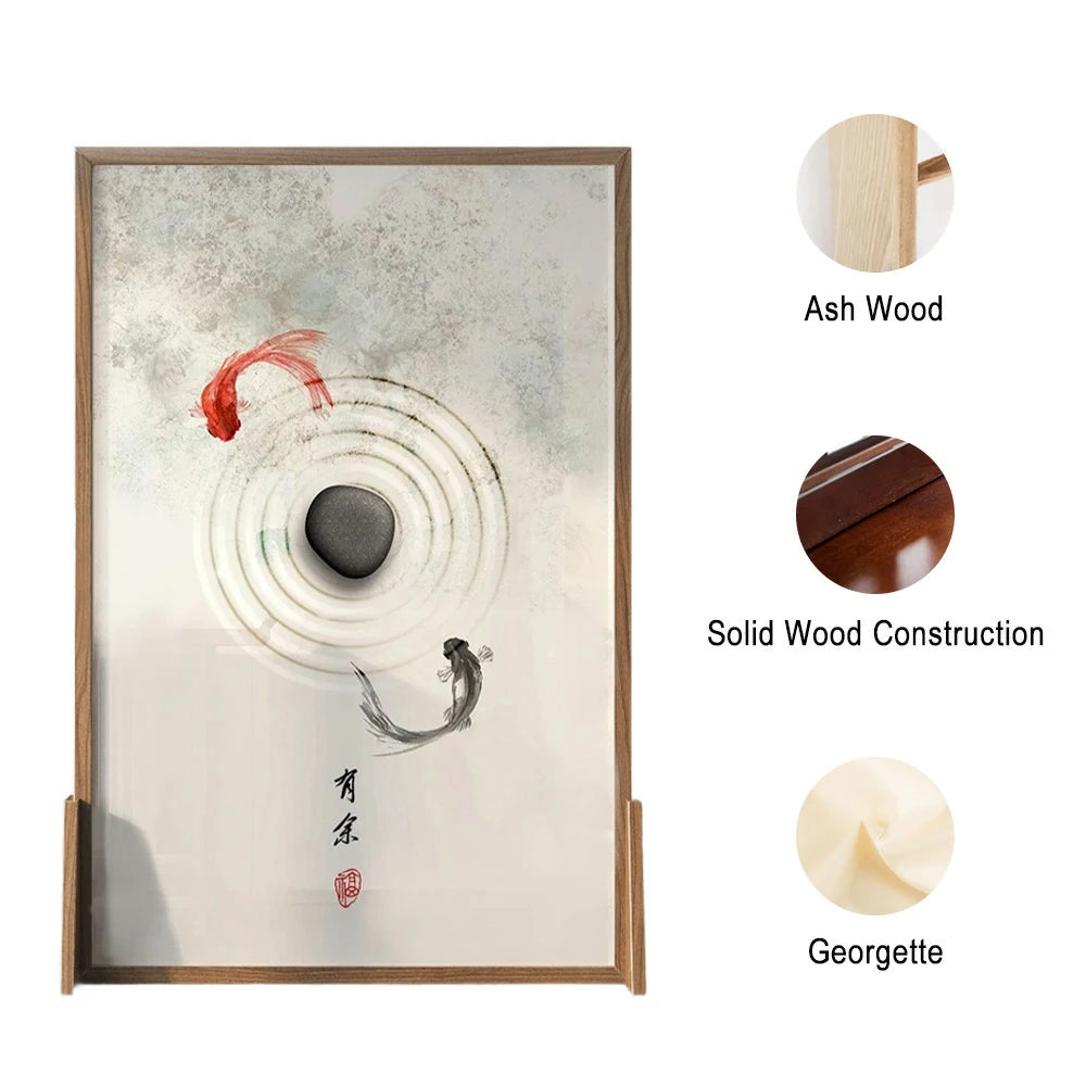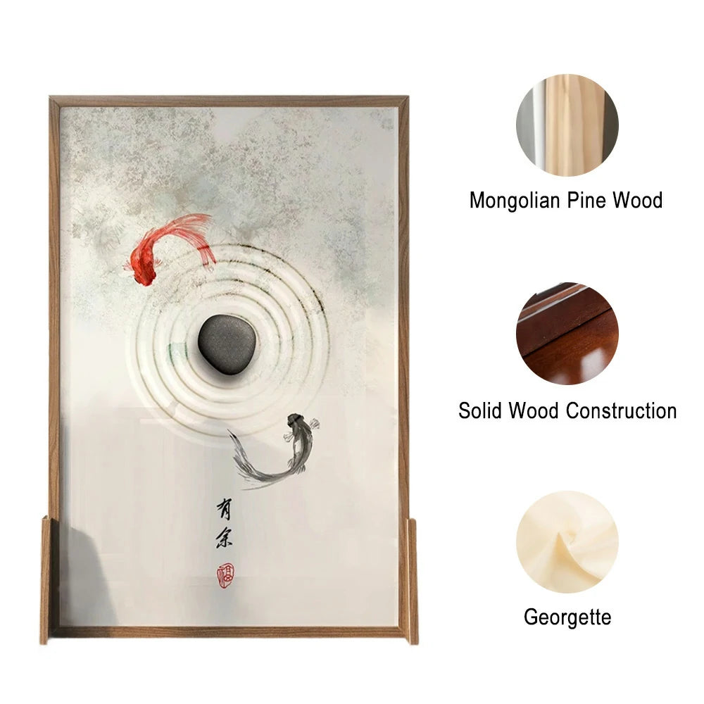 LIVARA Little Carp Pattern Screen Made Of Solid Wood White Wax Wood And Mongolian Pine With An Eastern Style Home Decoration