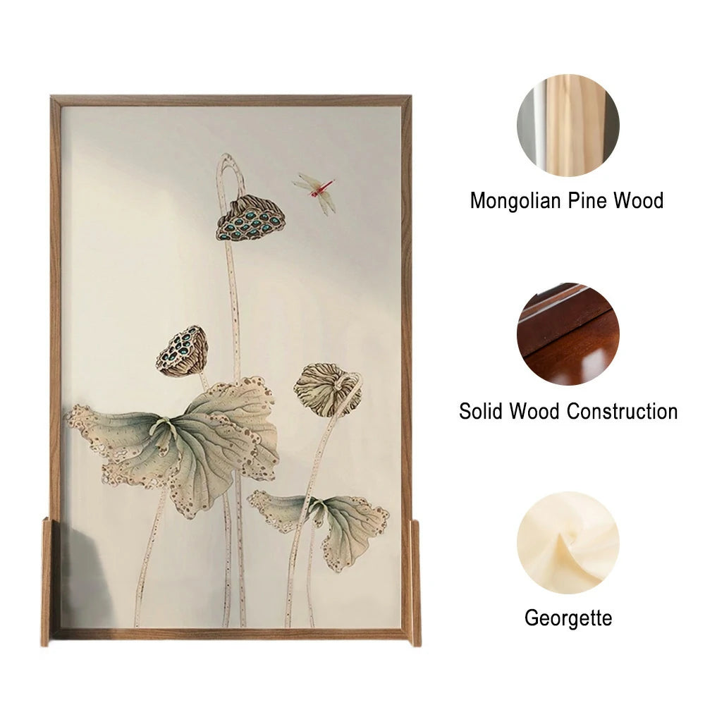 LIVARA lotus seedpod leaf Pattern Screen Made Of Solid Wood White Wax Wood And Mongolian Pine With An Eastern Style Home Decoration