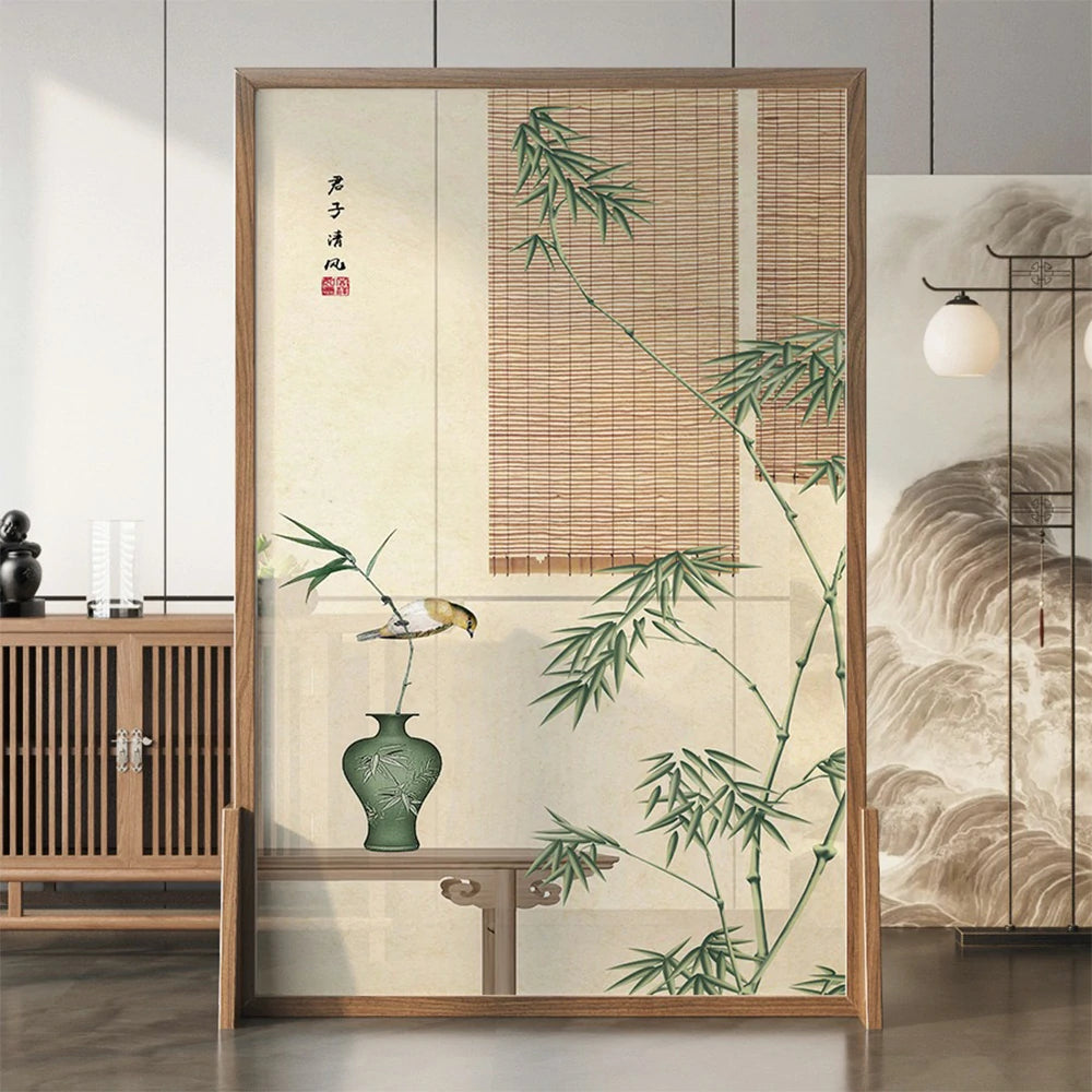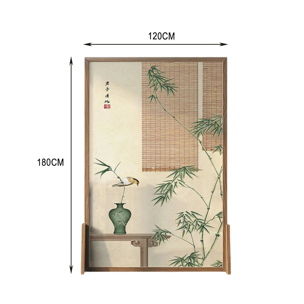 LIVARA Green plants Pattern Screen Made Of Solid Wood White Wax Wood And Mongolian Pine With An Eastern Style Home Decoration