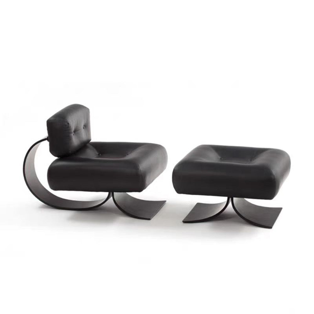 LIVARA EC1081 Fishtail Chair Lamb Fleece Black Titanium Stainless Steel Frame Leisure Chair With Ottoman