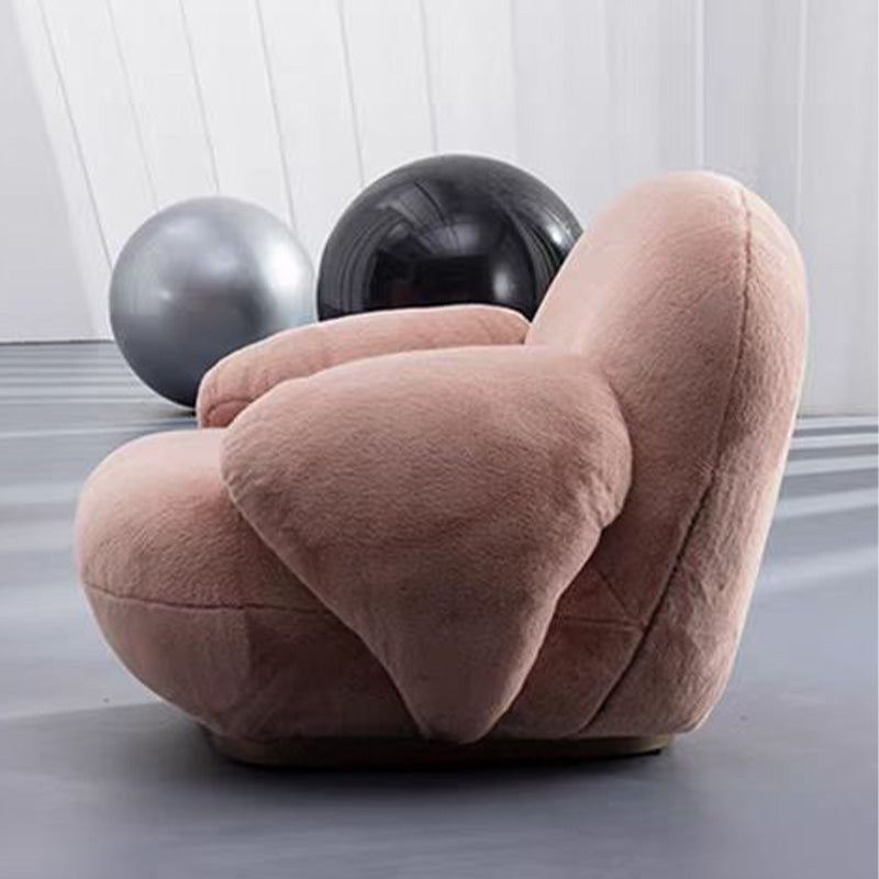 LIVARA EC1101 Rabbit Fur Solid Wood and Steel Frame Chair - Pink