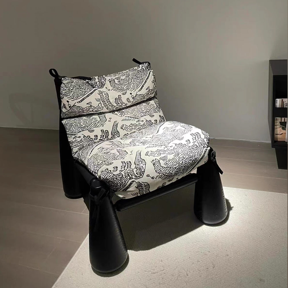 LIVARA EC1219 White Wax Wood Fabric Leisure Chair