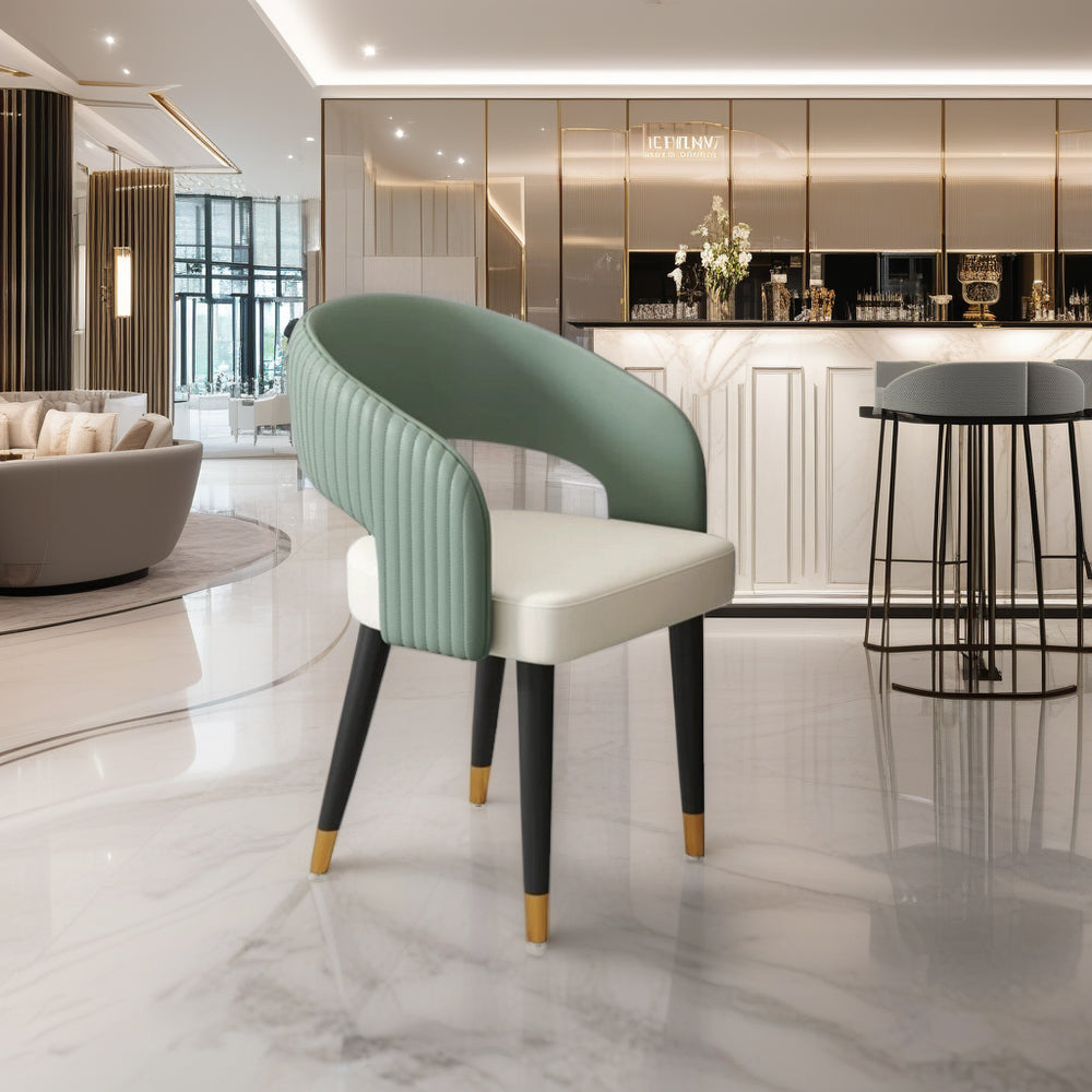 LIVARA DC1058 Faux Leather Fabric Dining Chair Solid Wood Frame