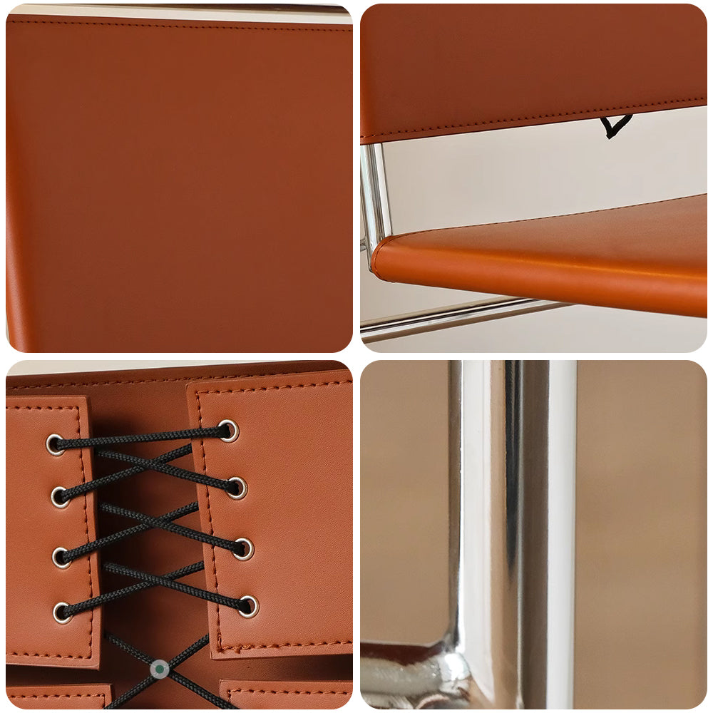 LIVARA DC1153 Italian Minimalist Style Saddle Leather Dining Chair Stainless Steel Legs