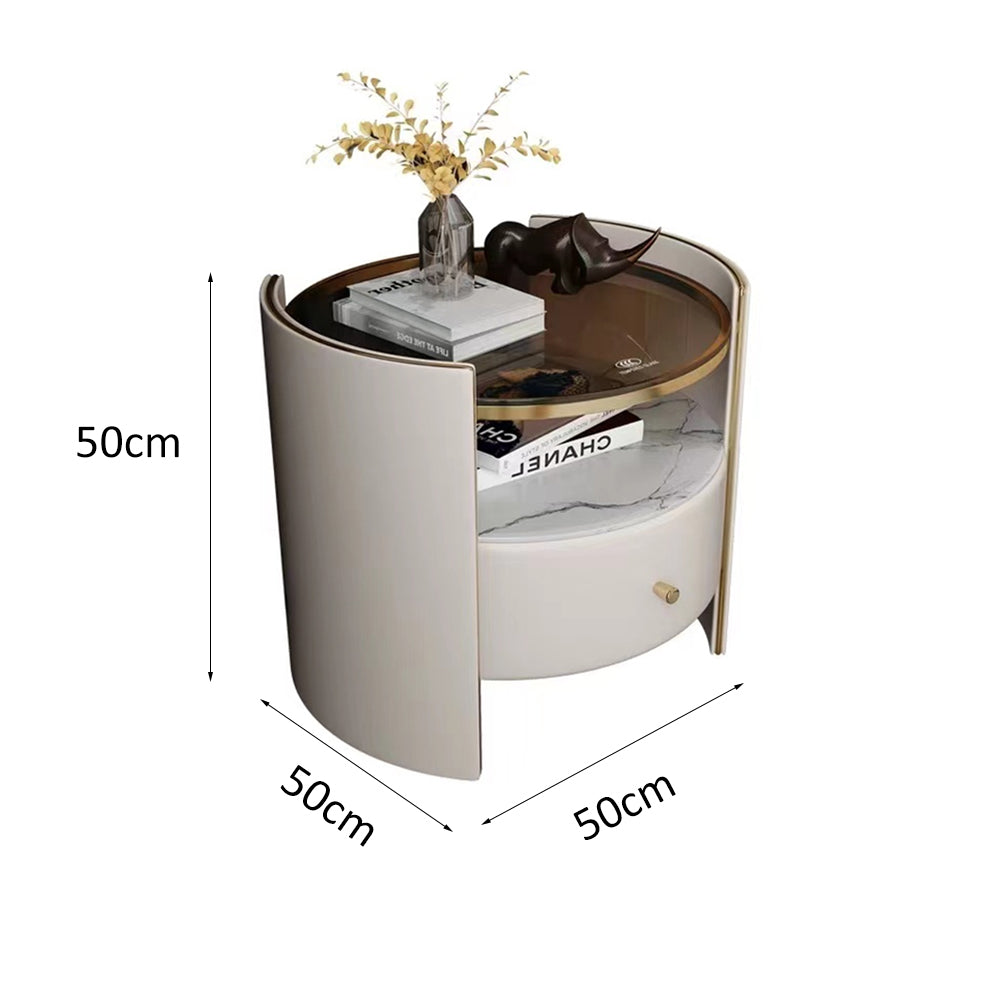 LIVARA NT1009 Modern Luxury Round Bedside Table With Sintered Stone And Glass Top Small Side Table