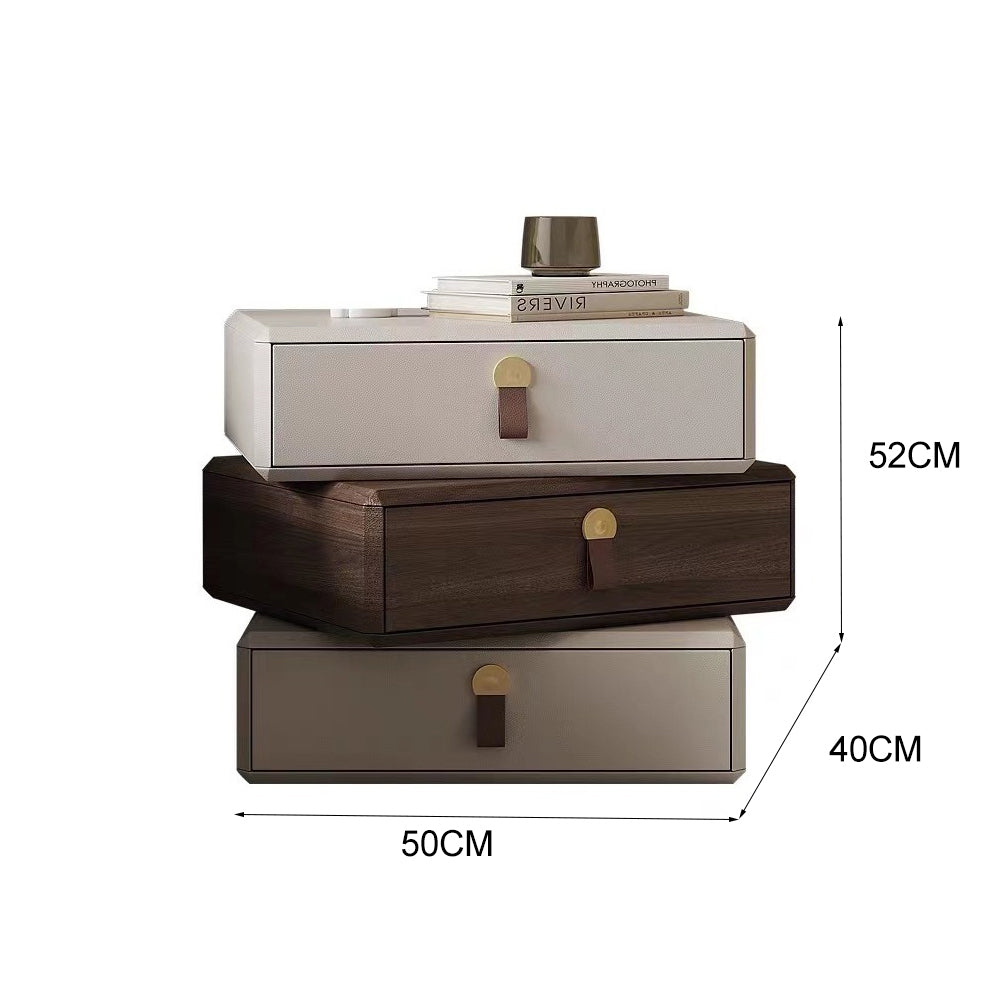 LIVARA NT1036 Rotating Bedside Table with Faux Leather Surface and Solid Wood Drawer, Velvet Lined
