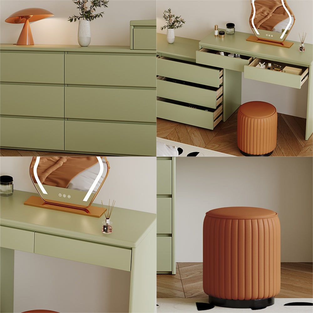 LIVARA 1008 Expandable Design 120cm Length LED Mirror Dressing Table With Stool - Green