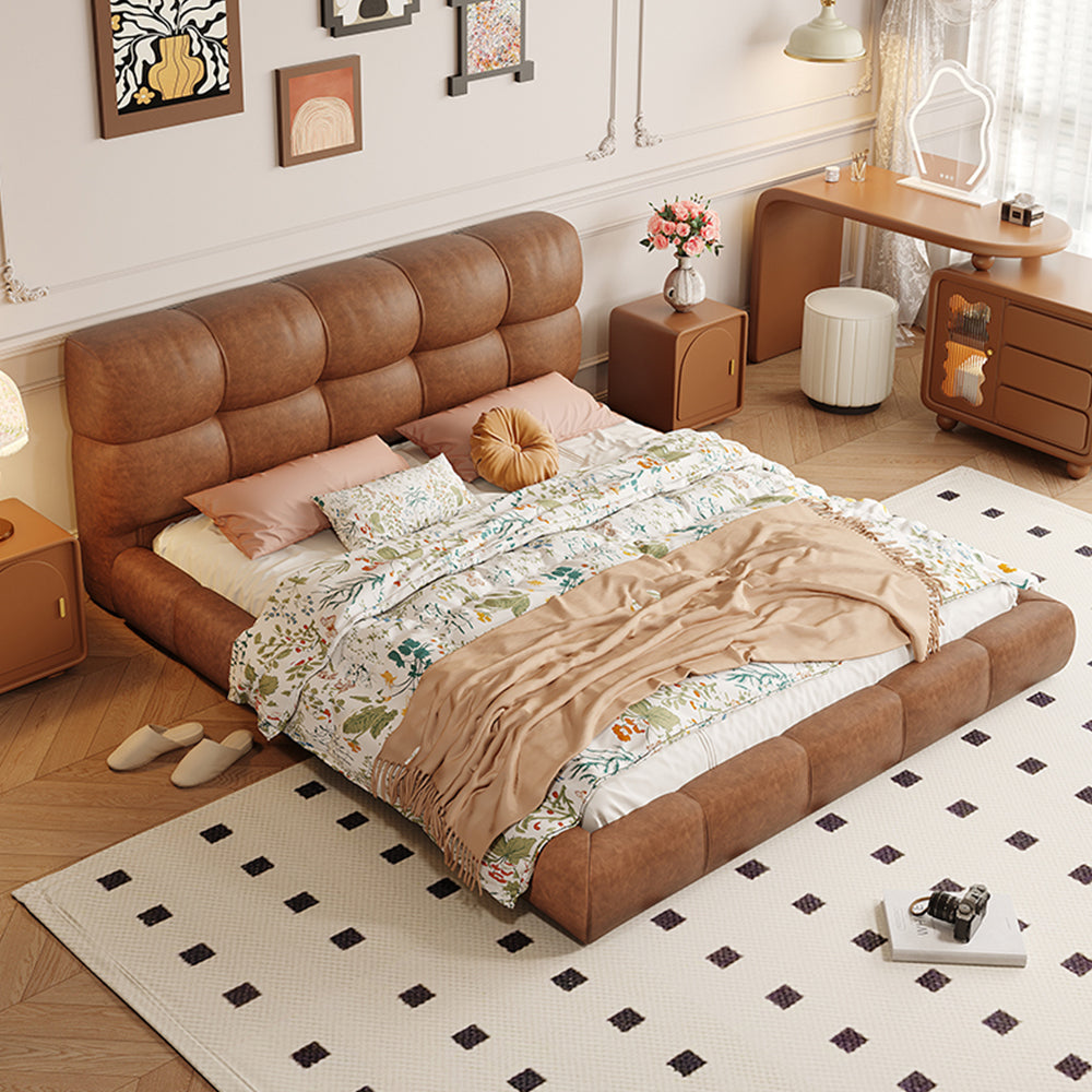 LIVARA Model-1063 150cm/180cm Waxed Leather Fabric Bed Solid Wood Frame