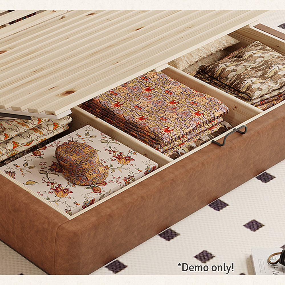 LIVARA Model-1067 150cm/180cm Waxed Leather Fabric Bed Solid Wood Frame