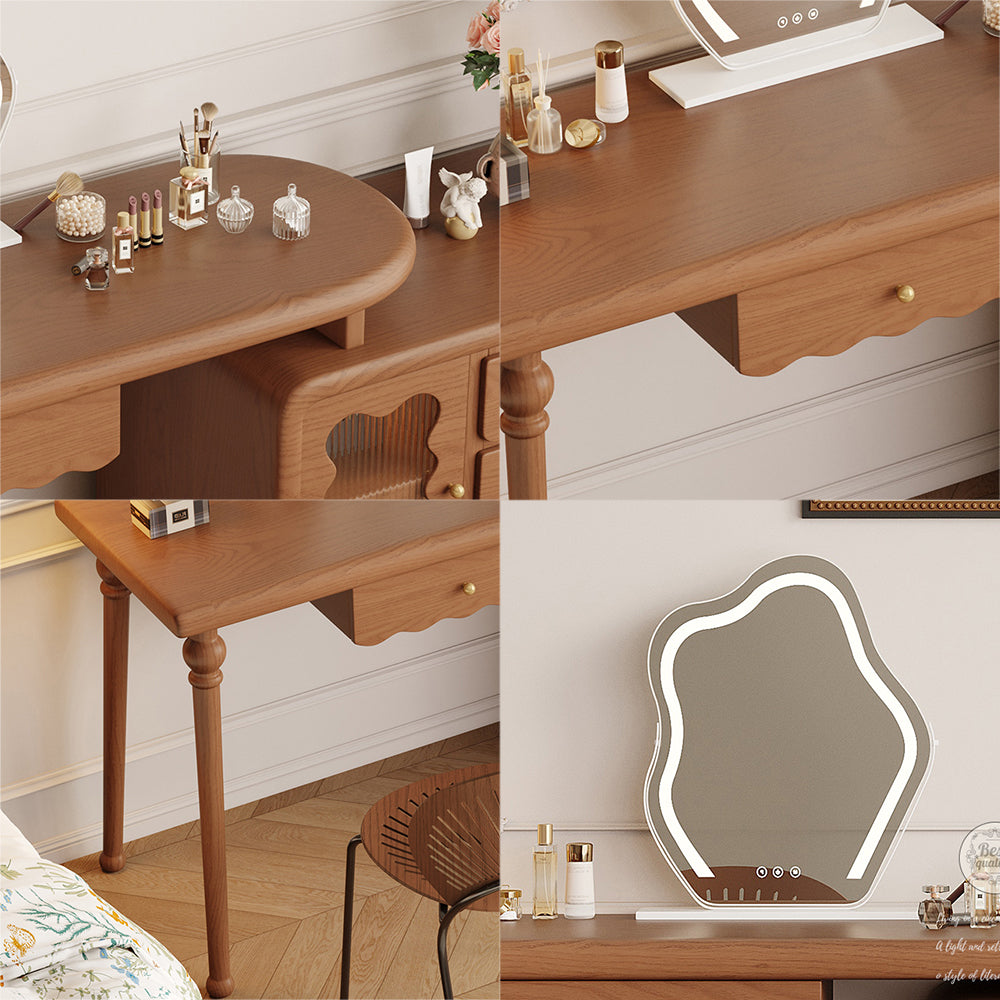 LIVARA 1081# Expandable Multi-Functional Solid Wood 100-120cm Dressing Table With LED Mirror - Walnut