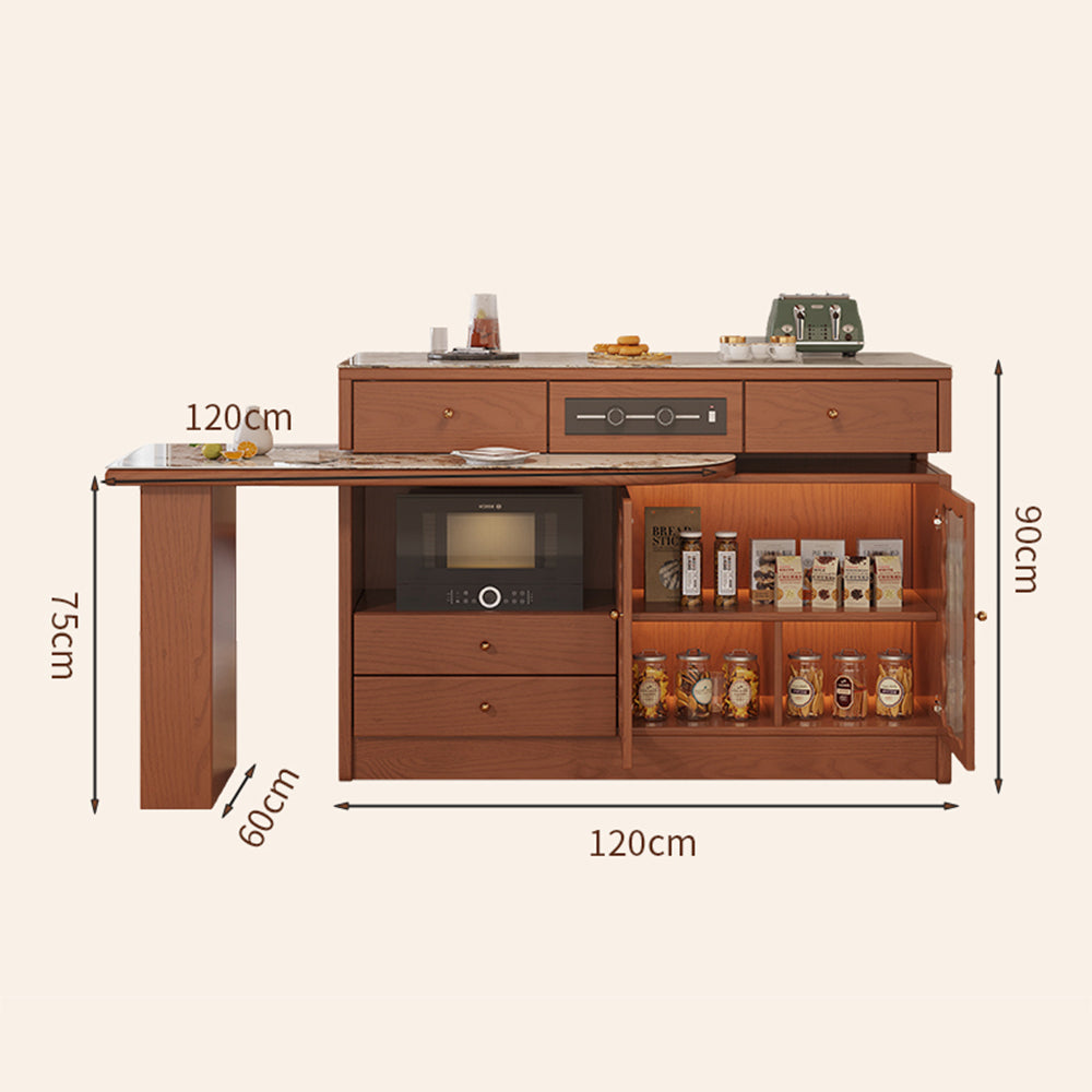 LIVARA Integrated Expandable Design Multifunctional Solid Wood Island Table With Rock Panel Dining Top