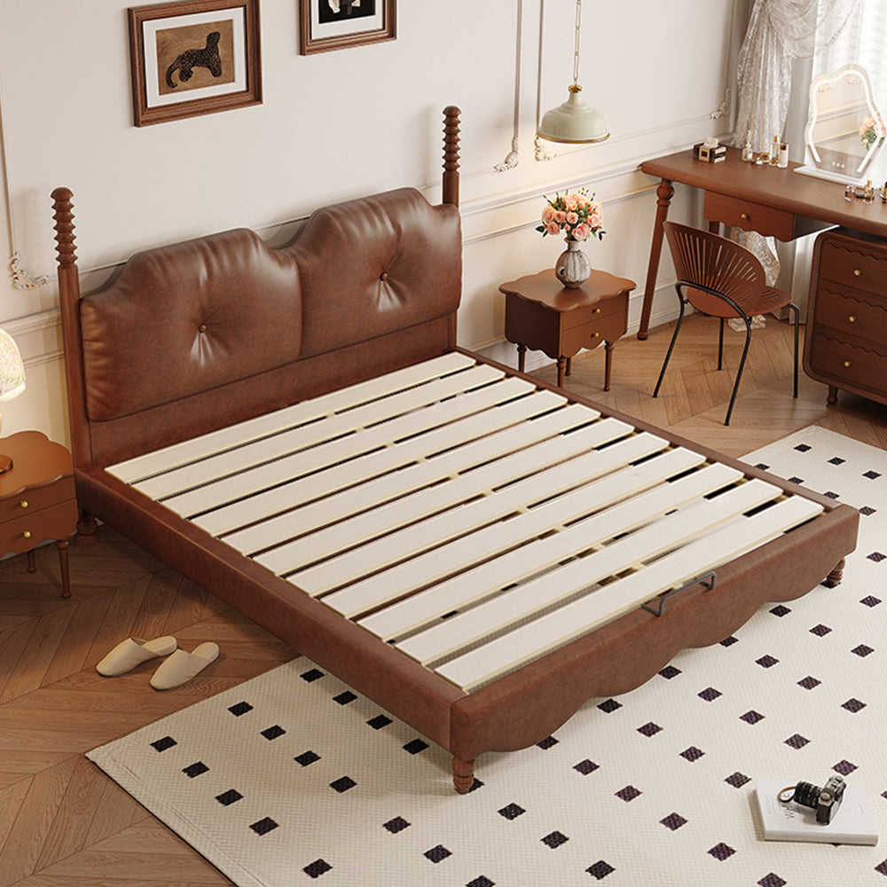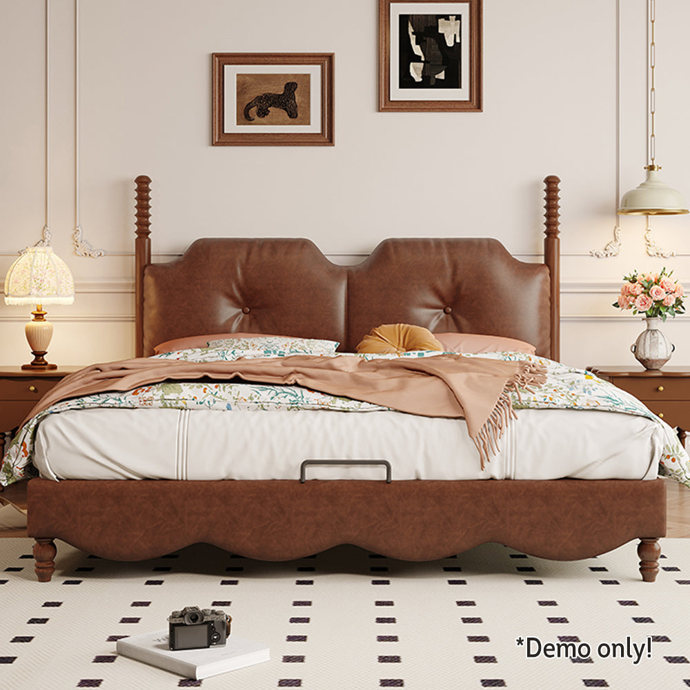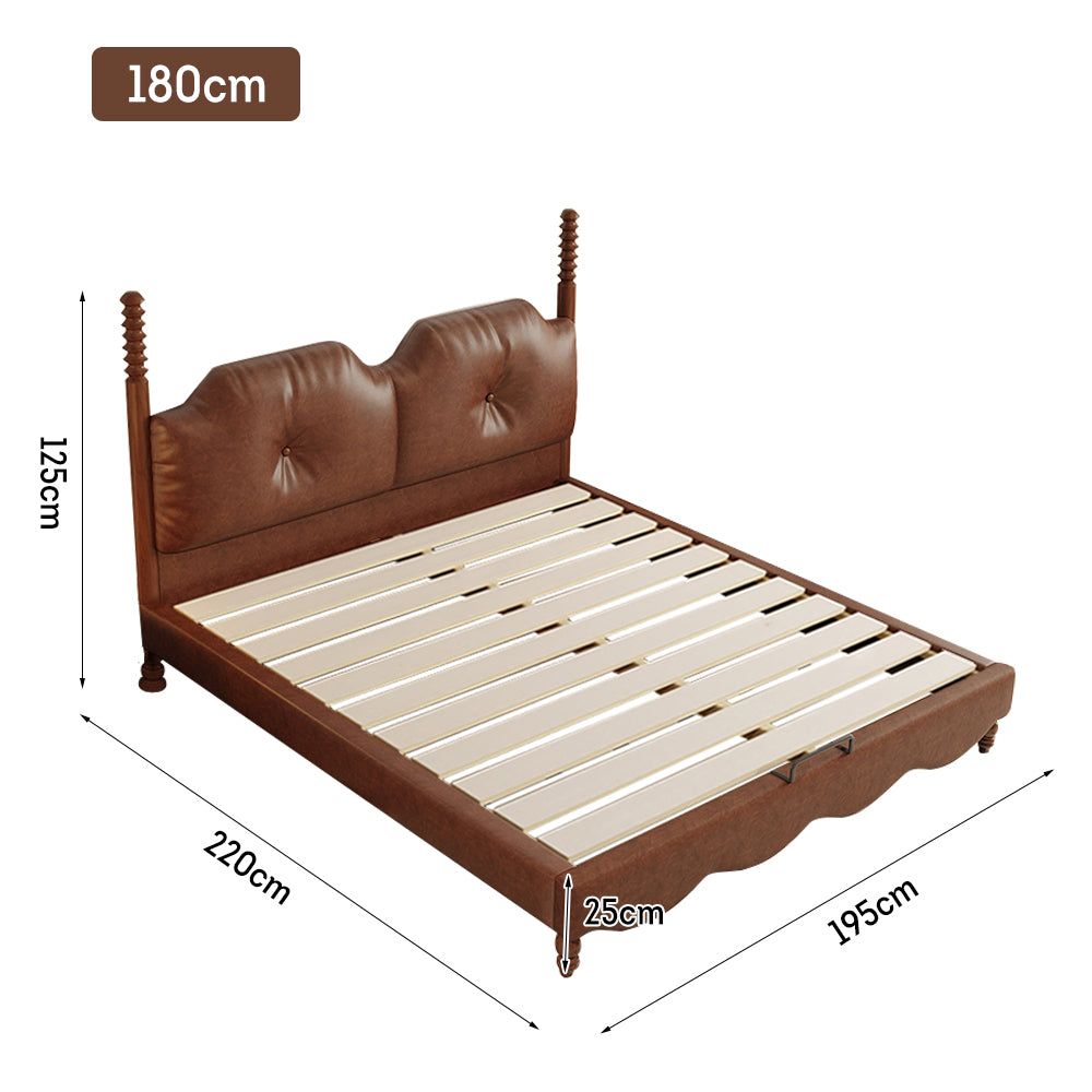 LIVARA Model-2004 150cm/180cm Waxed Leather Fabric Bed Solid Wood Frame