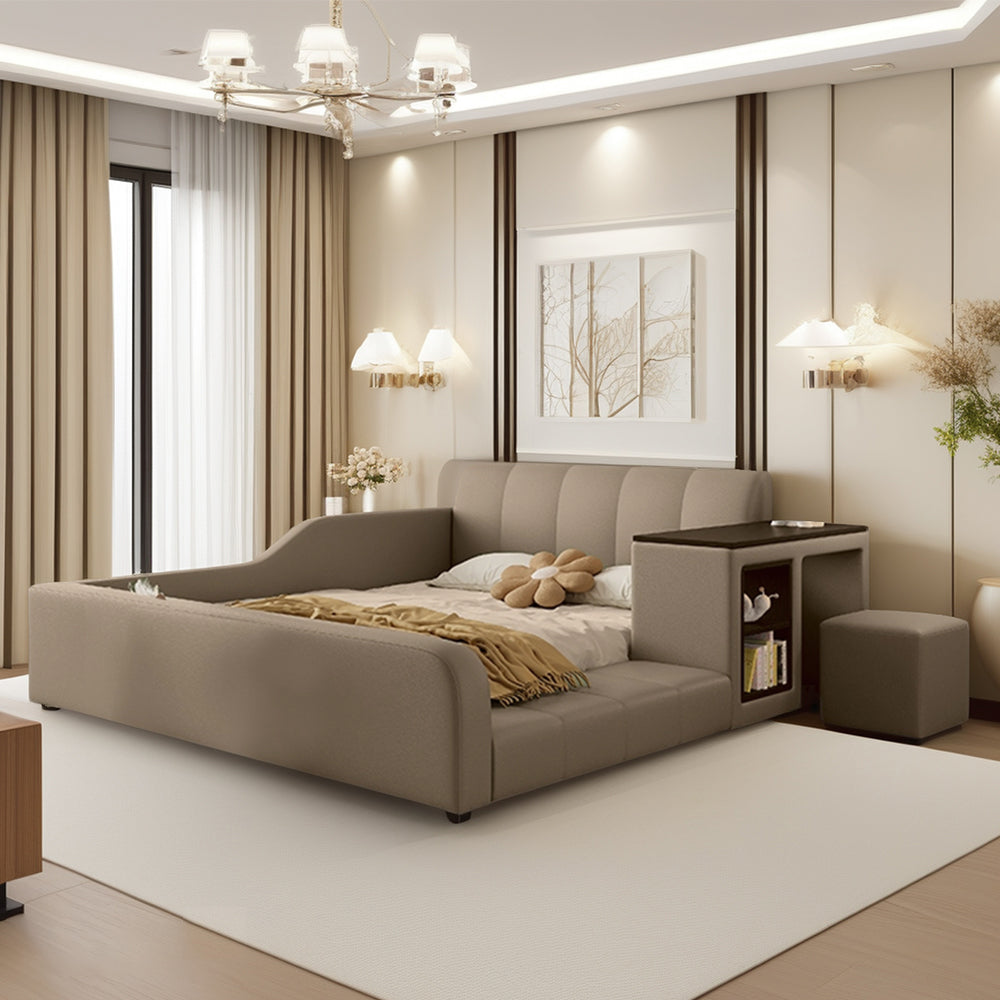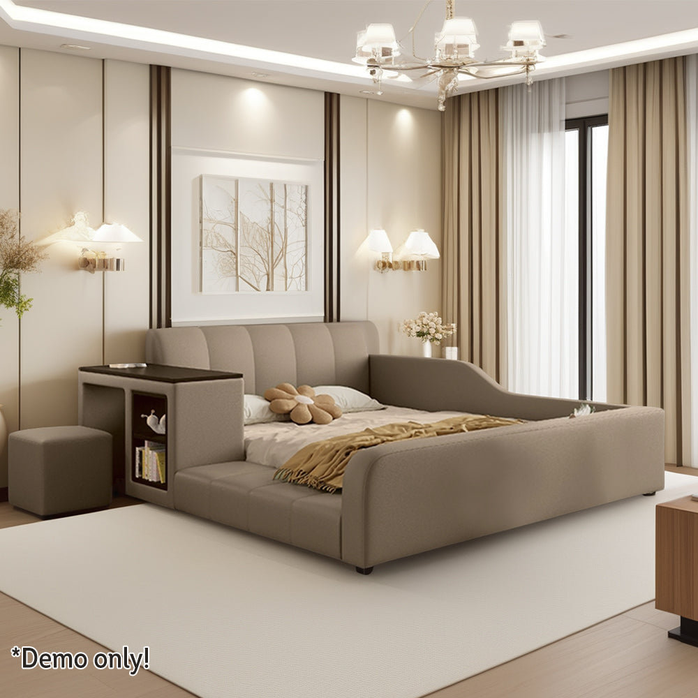 LIVARA SM901 120/135/150/180cm Lengrh Eco-friendly Leather Bed With Bookshelf - Grey
