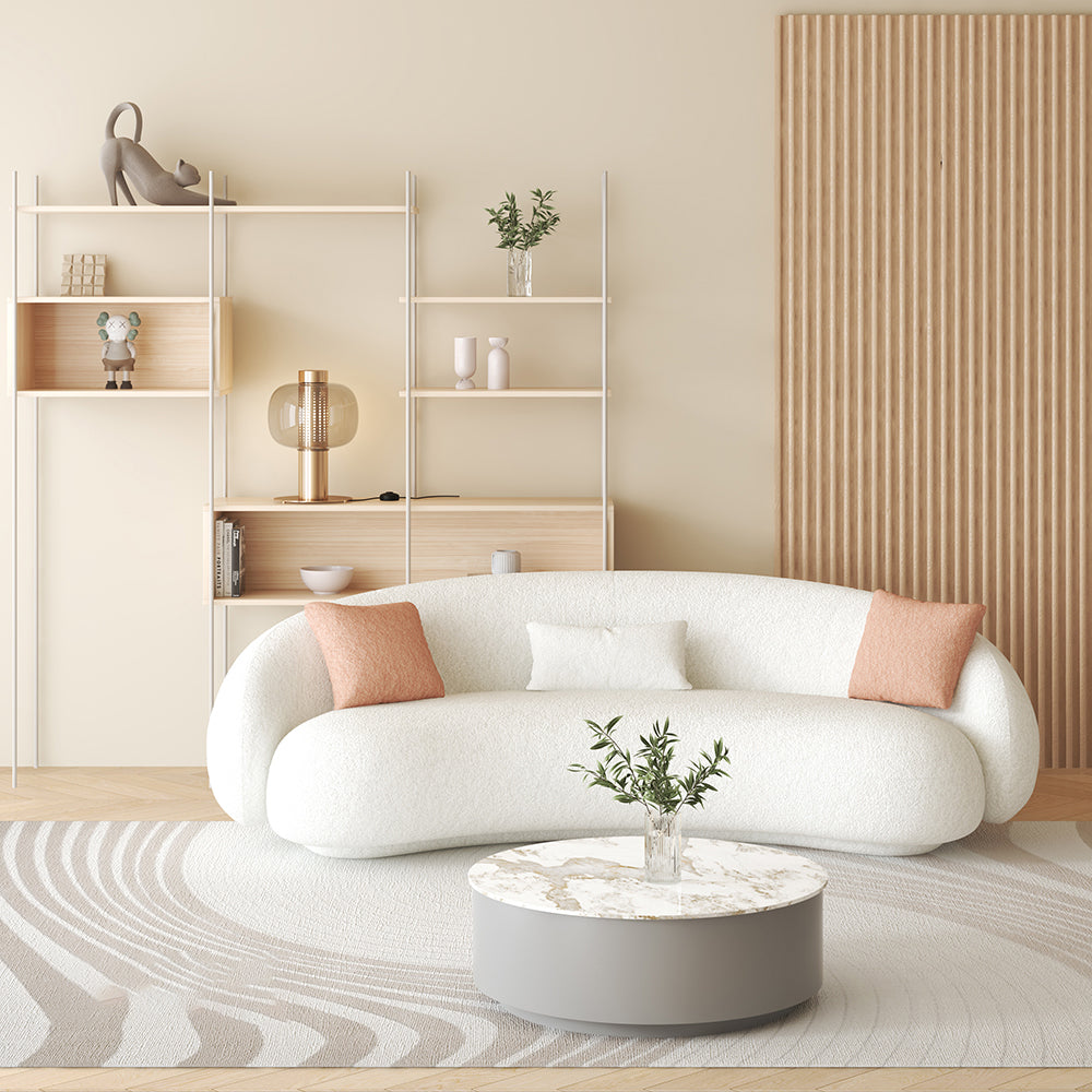 LIVARA SM908 260cm Length Lamb Fleece Fabric Sofa Solid Wood Frame - White