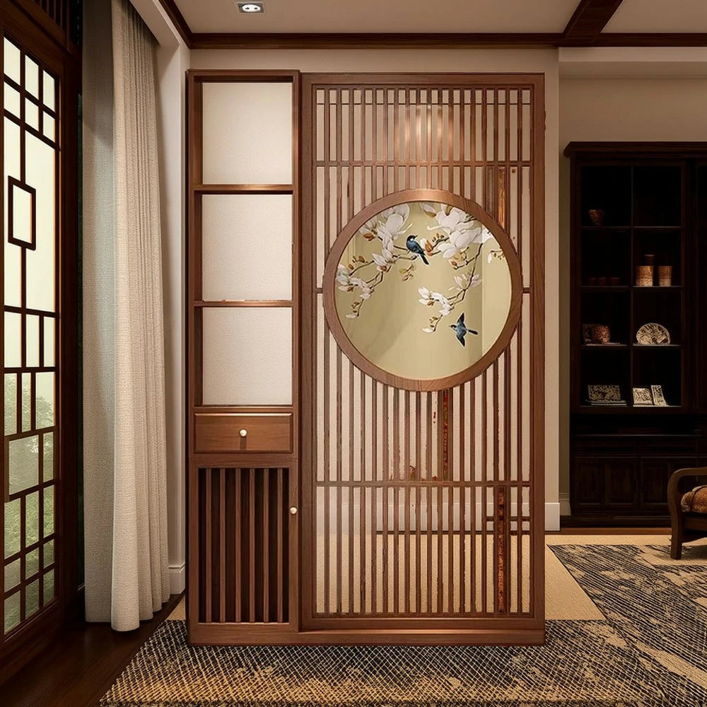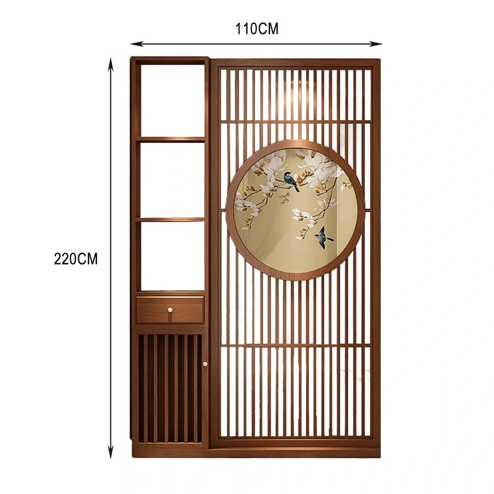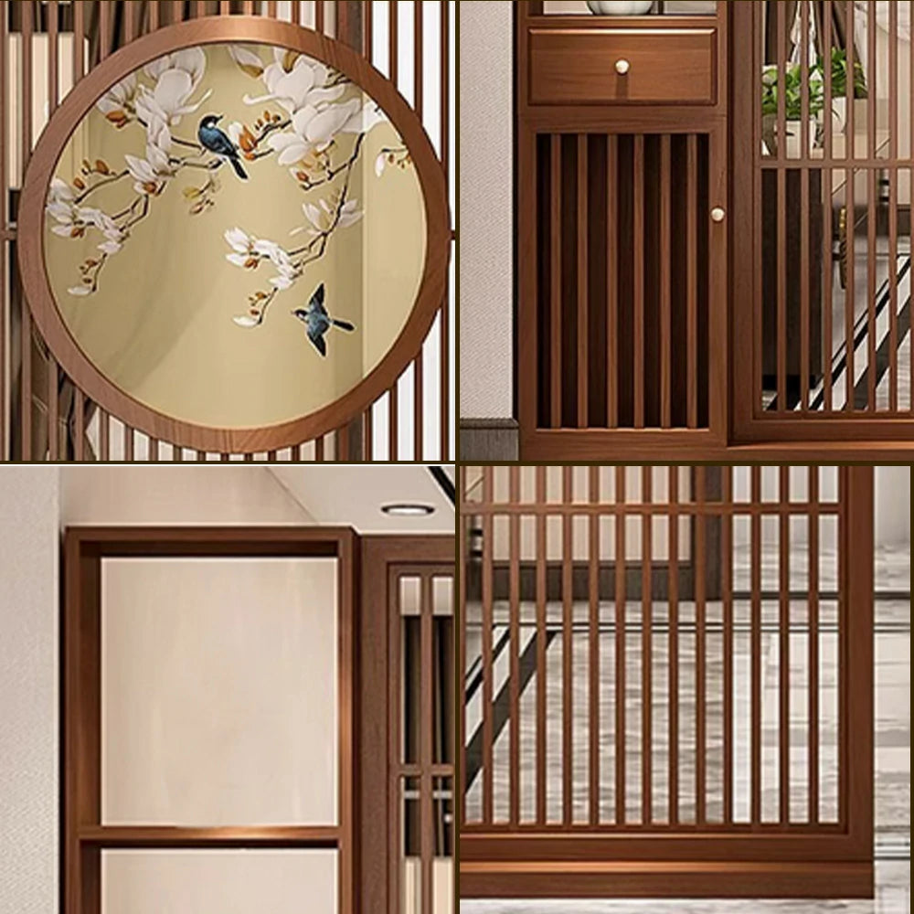 LIVARA Asian Style Solid Wood Room Divider, Hollow Slatted Design, Privacy Screen for Living Room Décor
