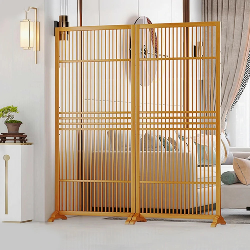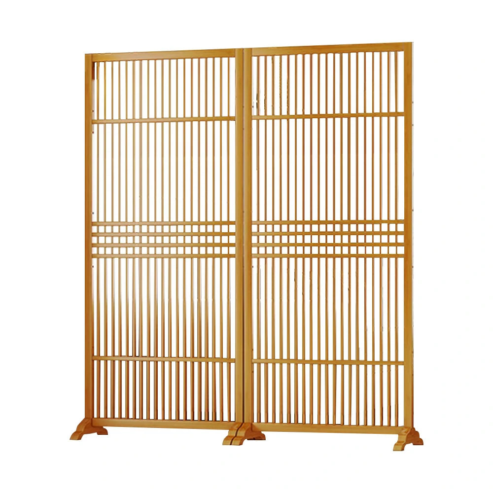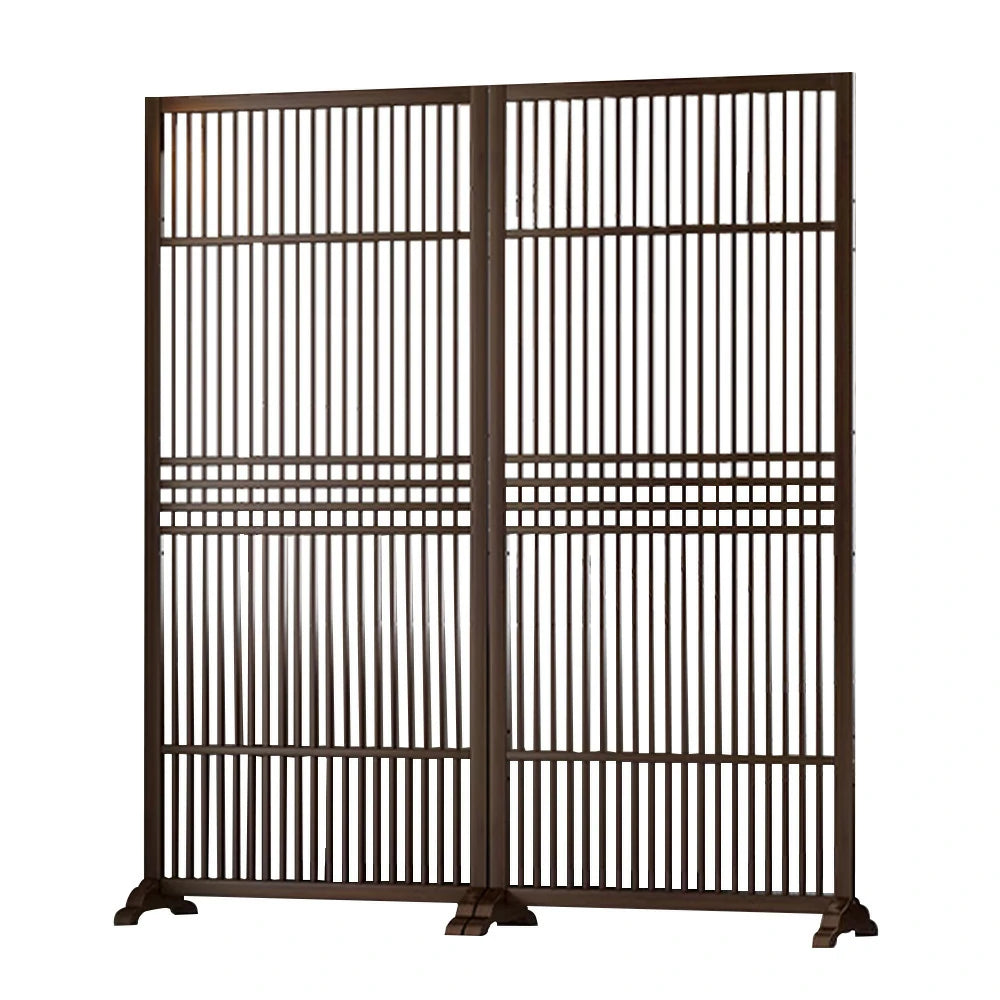 LIVARA Hollow Screen Partition With Two Pieces, 144Cm Wood Grain/Walnut Color