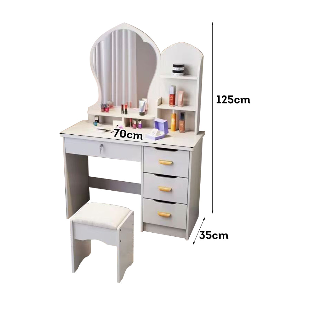 LIVARA 70-80CM Length Princess-Style Large Mirror Dressing Table With Stool