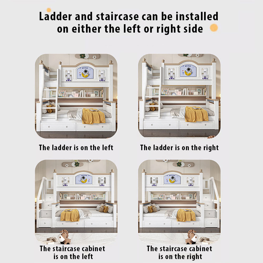 LUXORA CR 120/135/150/160/180cm Cherry Wood Bunk Bed with Staircase Storage Eco-Friendly Solid Wood Kids' Bed with Water-Based Paint