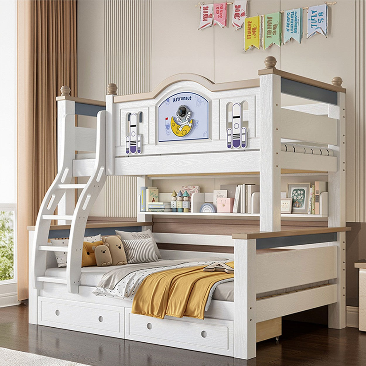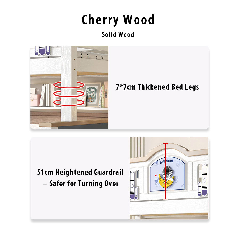 LUXORA ER 120/135/150/160/180cm Straight Ladder Bunk Bed - Solid Cherry Wood Children's Bed with Eco-Friendly Water-Based Paint, Installation Included