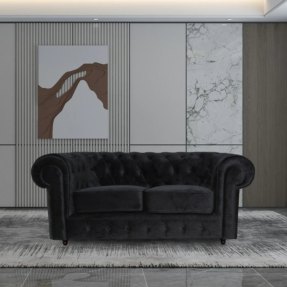 IVARA 181 Velvet 2-Seater Sofa 80cm Rolled Arms, Deep Button Tufting, Solid Timber Frame, Classic Chesterfield Design, Modern Elegance - Black