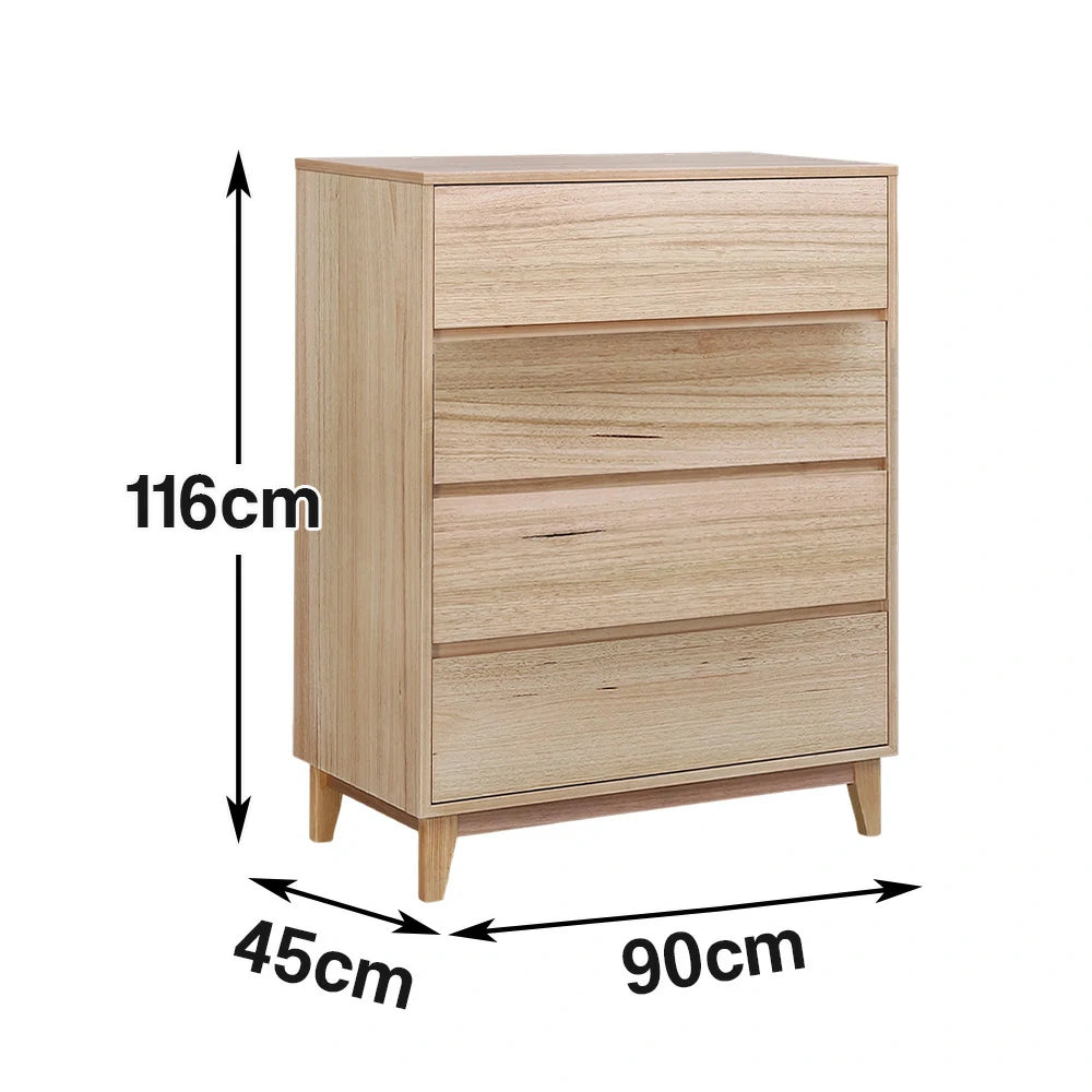 LIVARA 437 Tallboy Dresser, Tasmanian Oak Veneer, Four Drawers, Solid Wood Legs, Minimalist Scandinavian Style, Natural Finish