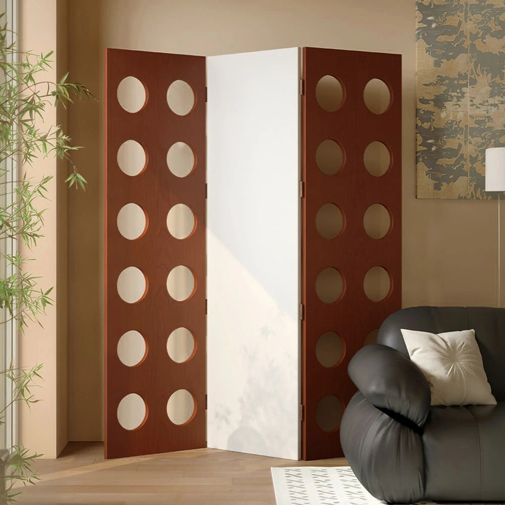 LIVARA 8810 Solid Wood Folding Room Divider, 180° Smooth Foldable Design, Cherry Veneer, Eco-Friendly Finish, Space-Saving - Wood and White