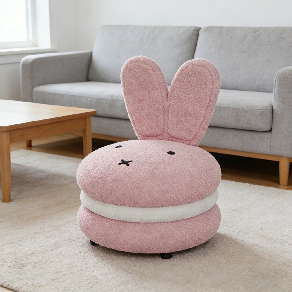 LIVARA Bunny-Shaped Sherpa Upholstered Stool, High-Resilience Foam Cushion, Solid Wood Frame, Wide Comfort Seat - Pink