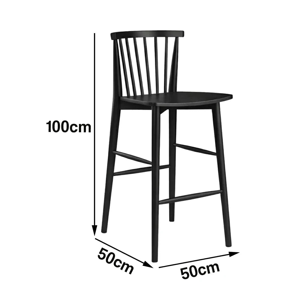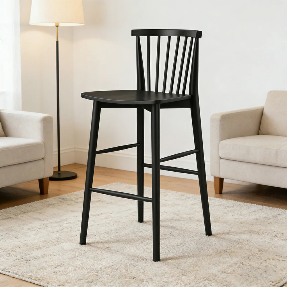 LIVARA Solid Wood Bar Stool - Ergonomic Slatted Backrest, Reinforced Crossbar Support, Durable Dining & Kitchen Seating - Black