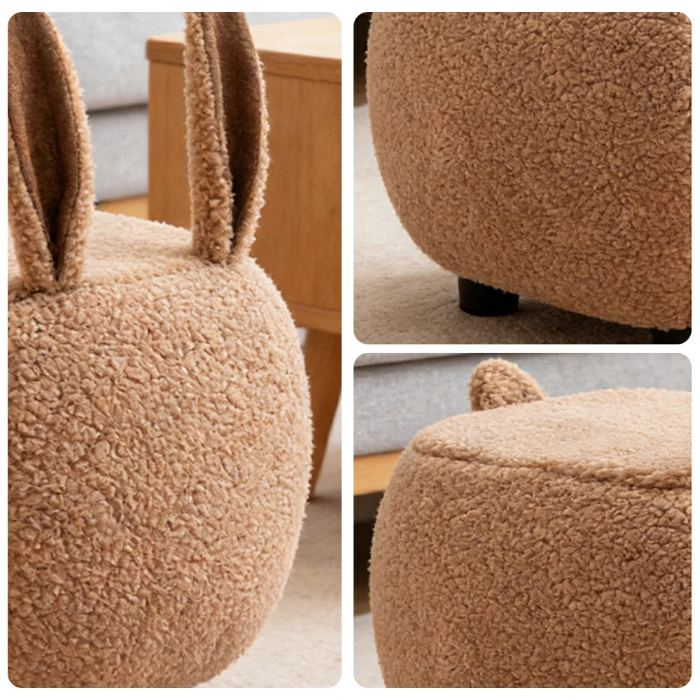 LIVARA Bunny-Shaped Cashmere-Fleece Stool, Supportive Comfort Seat, Durable Upholstery, Rounded Safety Design - Coffee