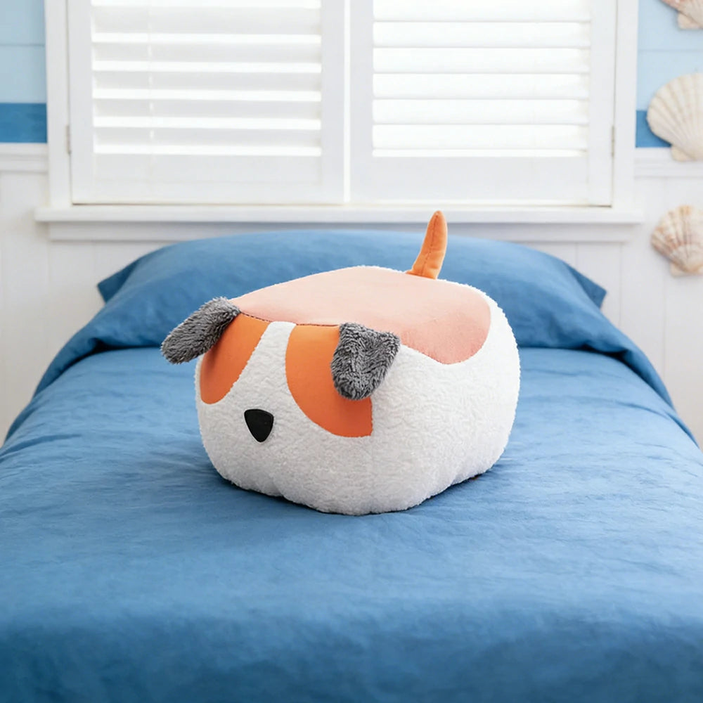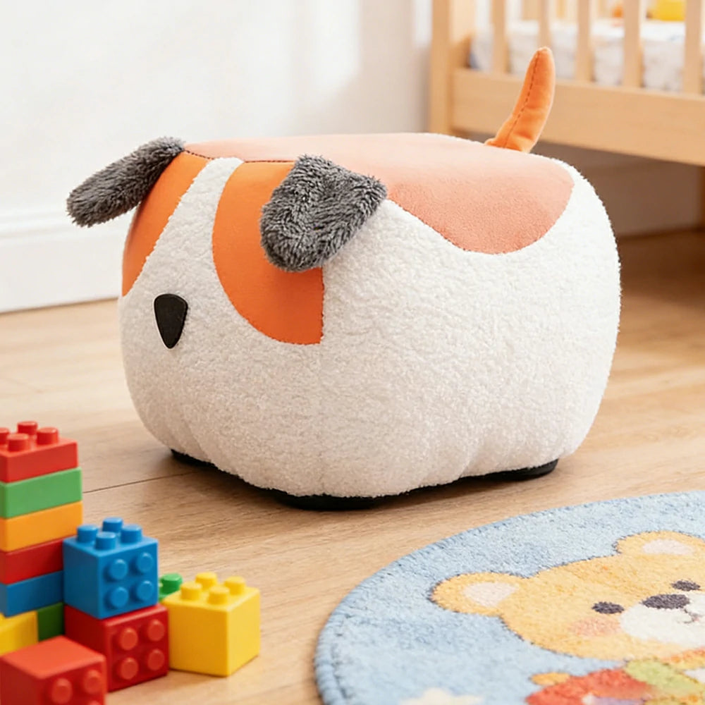 LIVARA Dog-Shaped Teddy Fleece Stool, Supportive Comfort Seat, Durable Upholstery, Rounded Safety Design - Orange