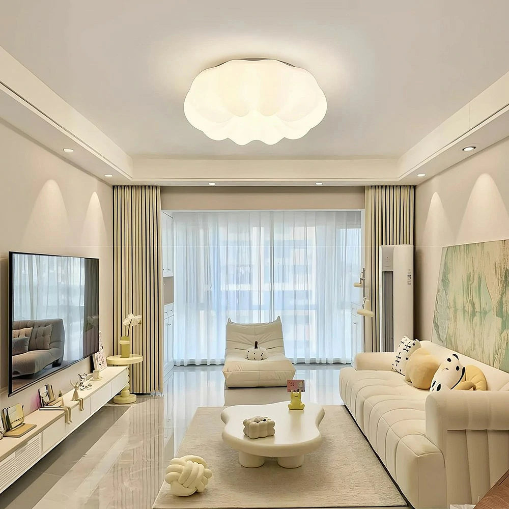LIVARA Pumpkin LED Ceiling Light 63cm 60W Three-Color Dimmable Anti-Glare Soft Light Iron & PE Lampshade Modern Flush Mount Lamp - White