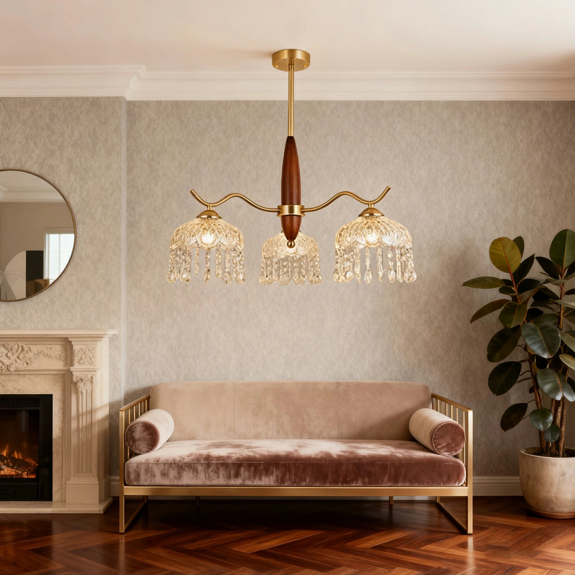 LIVARA 36W Crystal Pendant Light with Eye-Protection LED, Three-Color Dimmable Lighting & Solid Wood Electroplated Iron Body
