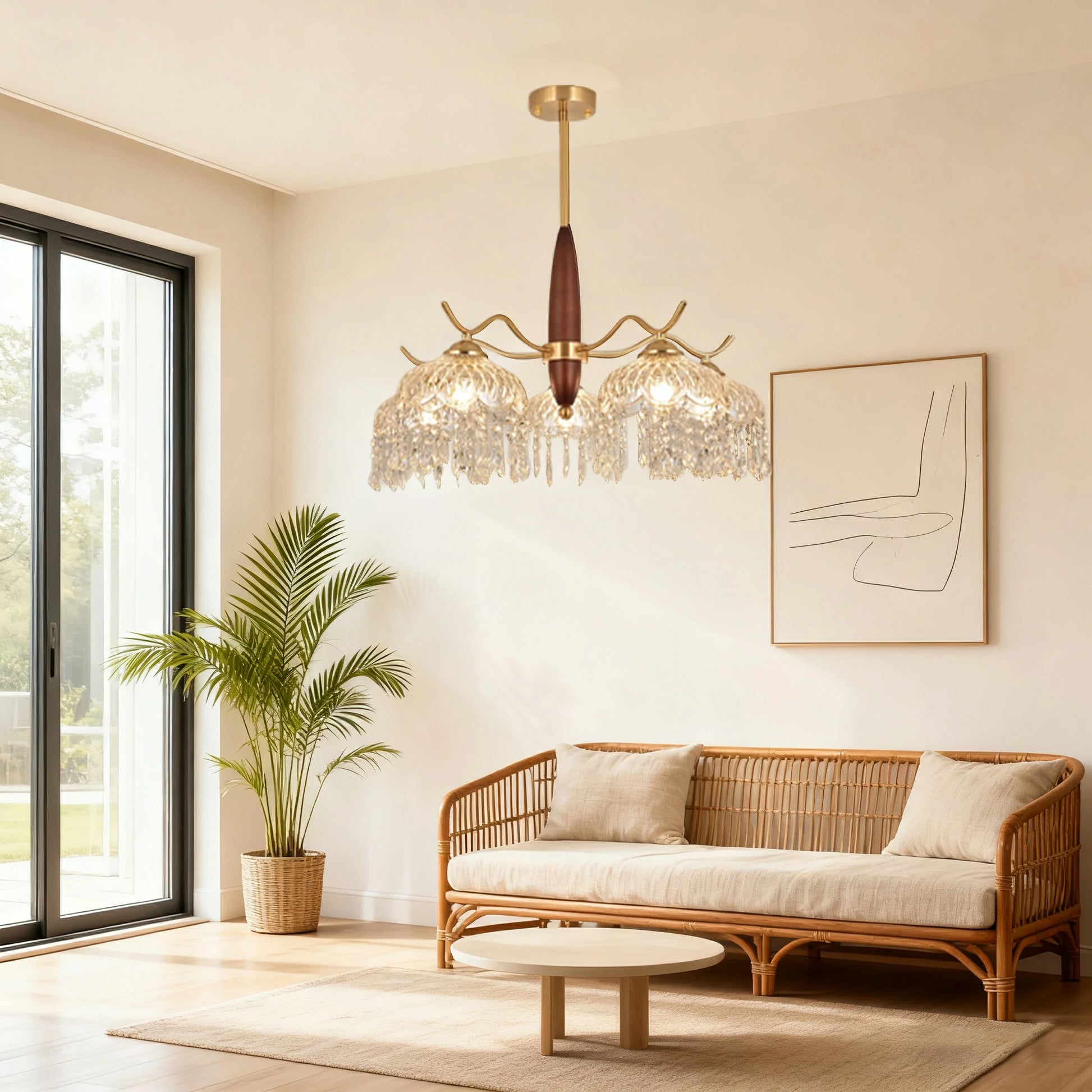 LIVARA 60W Crystal Pendant Light with Eye-Protection LED, Three-Color Dimmable Lighting & Solid Wood Electroplated Iron Body