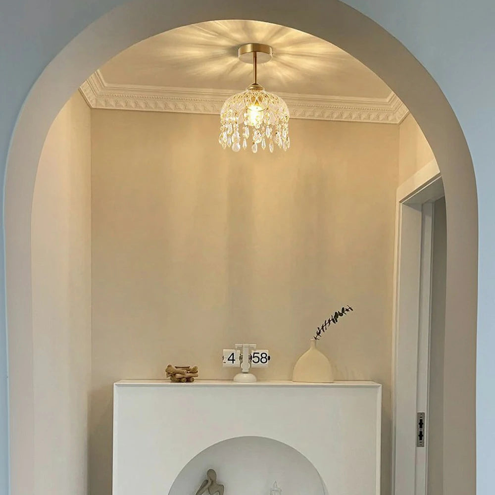 LIVARA 20cm Crystal Pendant Light Eye-Protective Three-Color Dimmable LED Hanging Lamp Modern Electroplated Iron Design