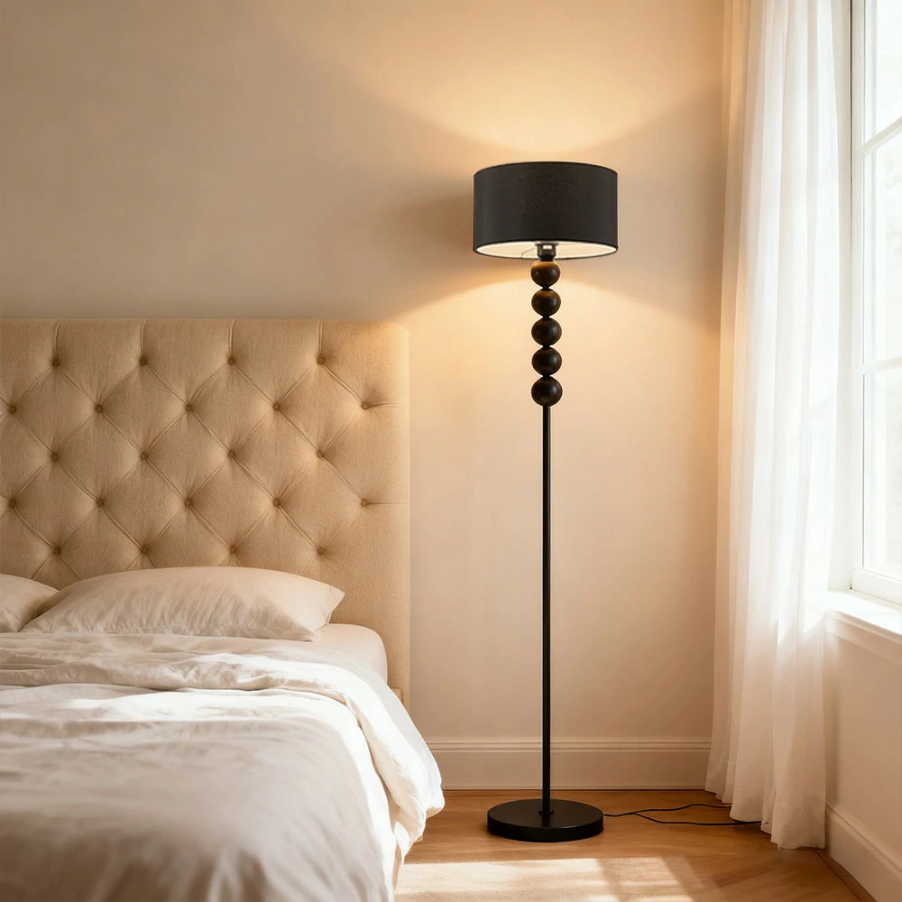 LIVARA 5W/7W/12W Floor Lamp with Full-Spectrum Eye-Protection Light, Fabric Shade, Three-Color Dimmable E27 Bulb & Black Iron Base - Black