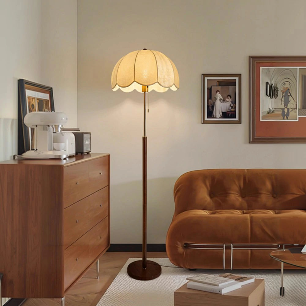 LIVARA Floor Lamp with Jacquard Fabric Shade, 9/12W Wood-Grain Iron Pole, Pull Chain – Anti-Wobble Base & Fire-Retardant Holder