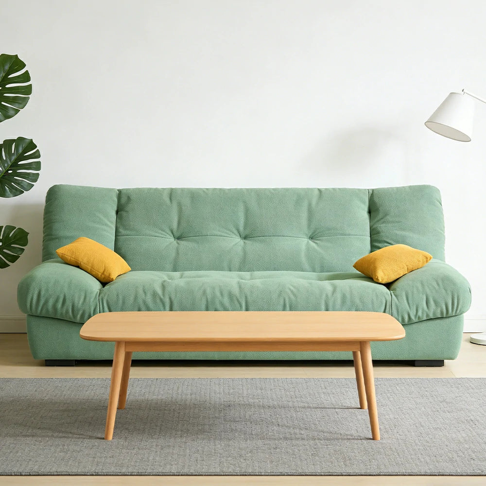LIVARA 160/180cm Sofa Bed, Adjustable Backrest Design, Milk Velvet Upholstery, Solid Wood Frame, Armless Space-Saving Style - Green