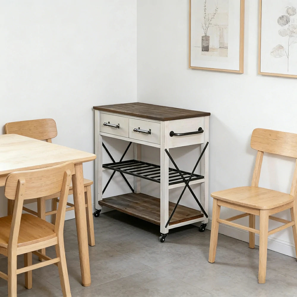 LIVARA Rustic Kitchen Trolley - Drawer Storage with 20 Bottle Wine Rack - Durable MDF Top - Farmhouse Rolling Island Cart with 360 Degree Castors