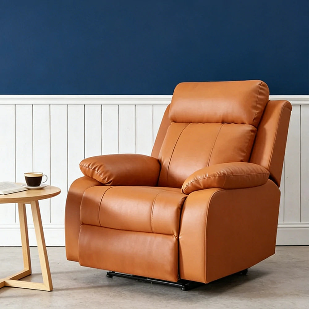 LIVARA 0.98m Single Electric Home Theatre Recliner Sofa Top-Grain Leather Ergonomic Design One-Touch Adjustable Backrest & Footrest - Brown