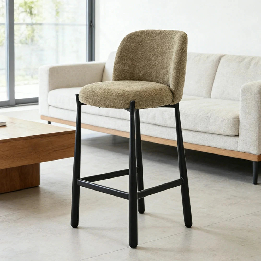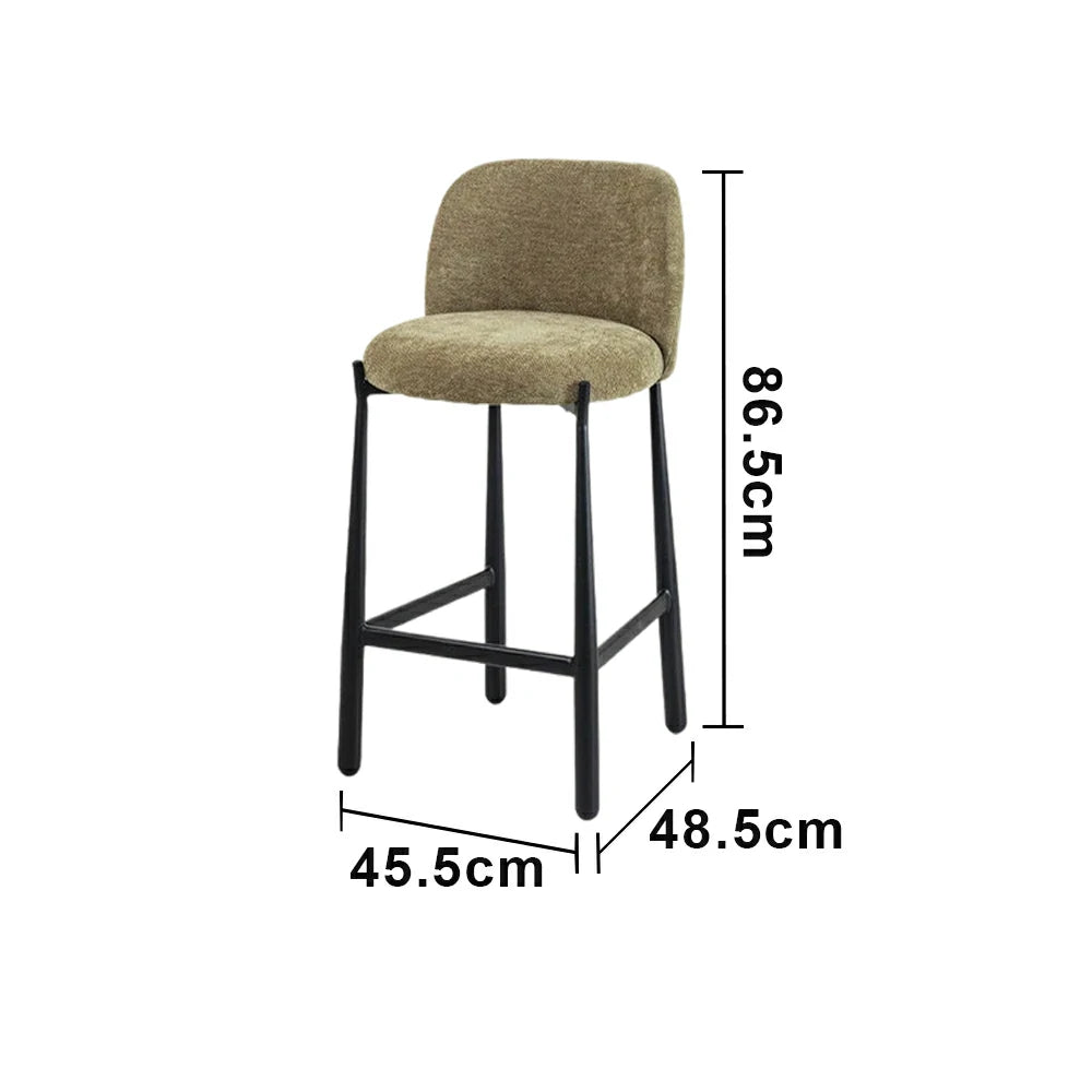 LIVARA Modern Bar Stool - Ergonomic Curved Backrest, Soft Upholstered Seat, Stable Metal Legs, Kitchen & Bar Use, Seat Height 65cm - Green