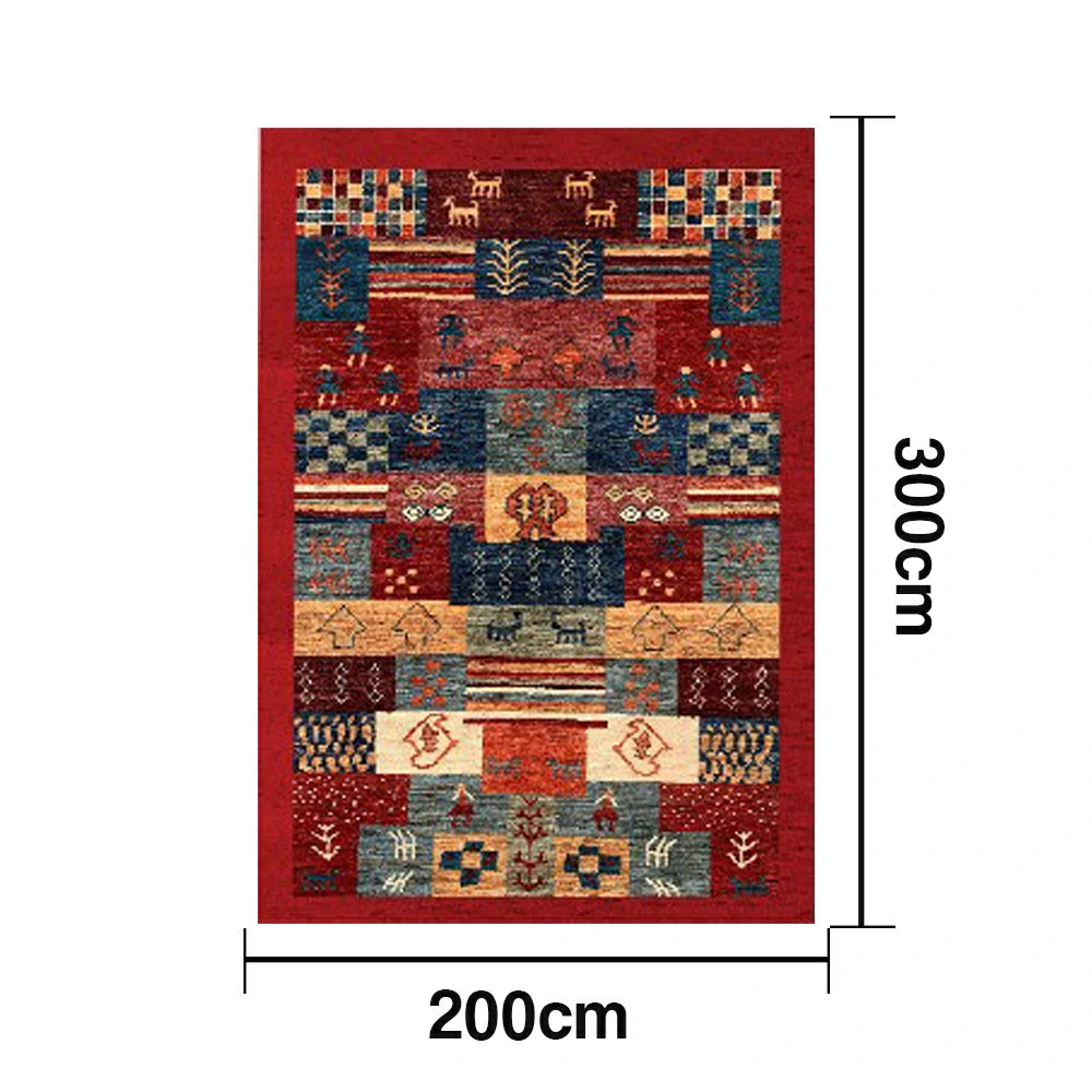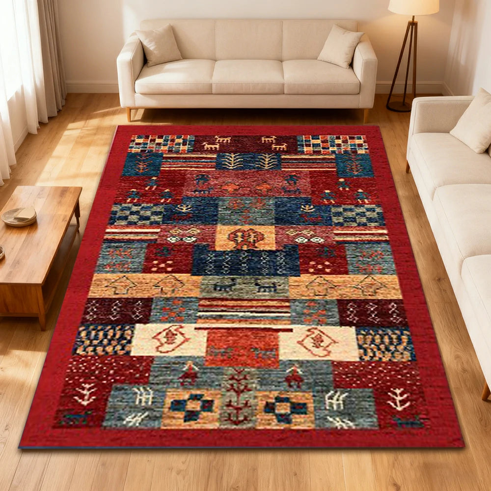 LIVARA 160/200cm Gabbeh Patchwork Loop-Pile Rug - Upgraded Non-Slip Eco Cotton-Latex Backing - Waterproof, Stain-Resistant, Soft & Durable - Red Multi