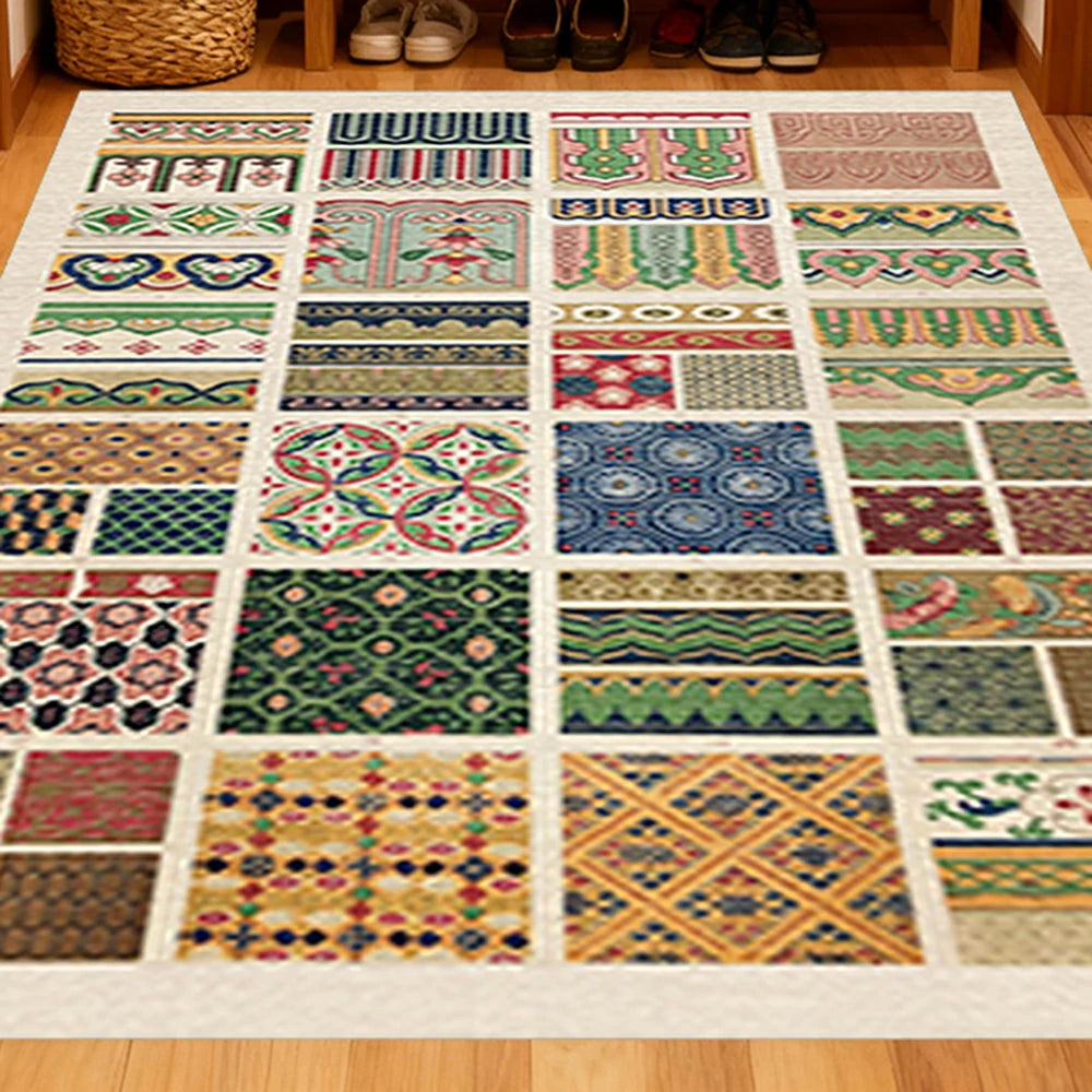 LIVARA 160/200cm Patchwork Vintage Pattern Loop-Pile Rug - Upgraded Non-Slip Eco Cotton-Latex Backing - Waterproof, Stain-Resistant, Soft & Durable - Multi-Color