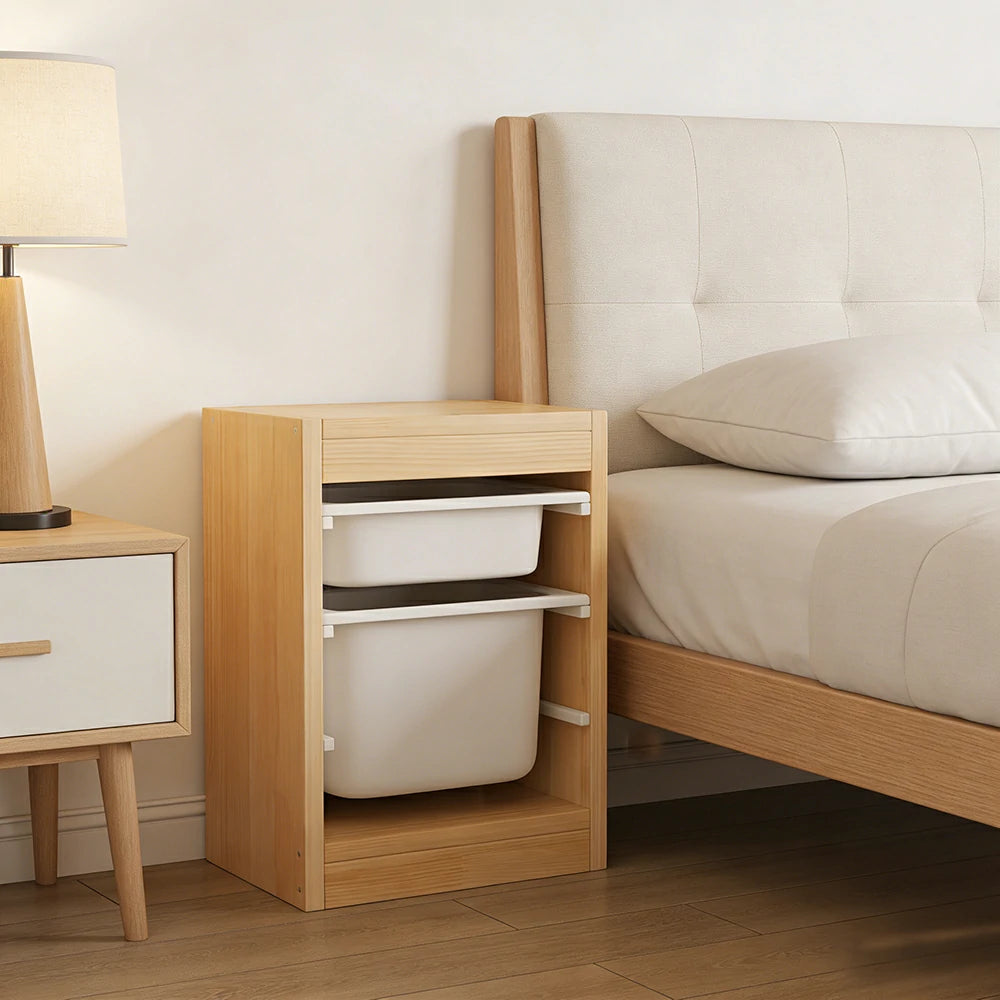 LIVARA Solid Wood Toy Storage Cabinet - Child-Safe Pull-Out Bins, Space-Saving Design, Eco-Friendly Kids Storage Unit - Natural Wood