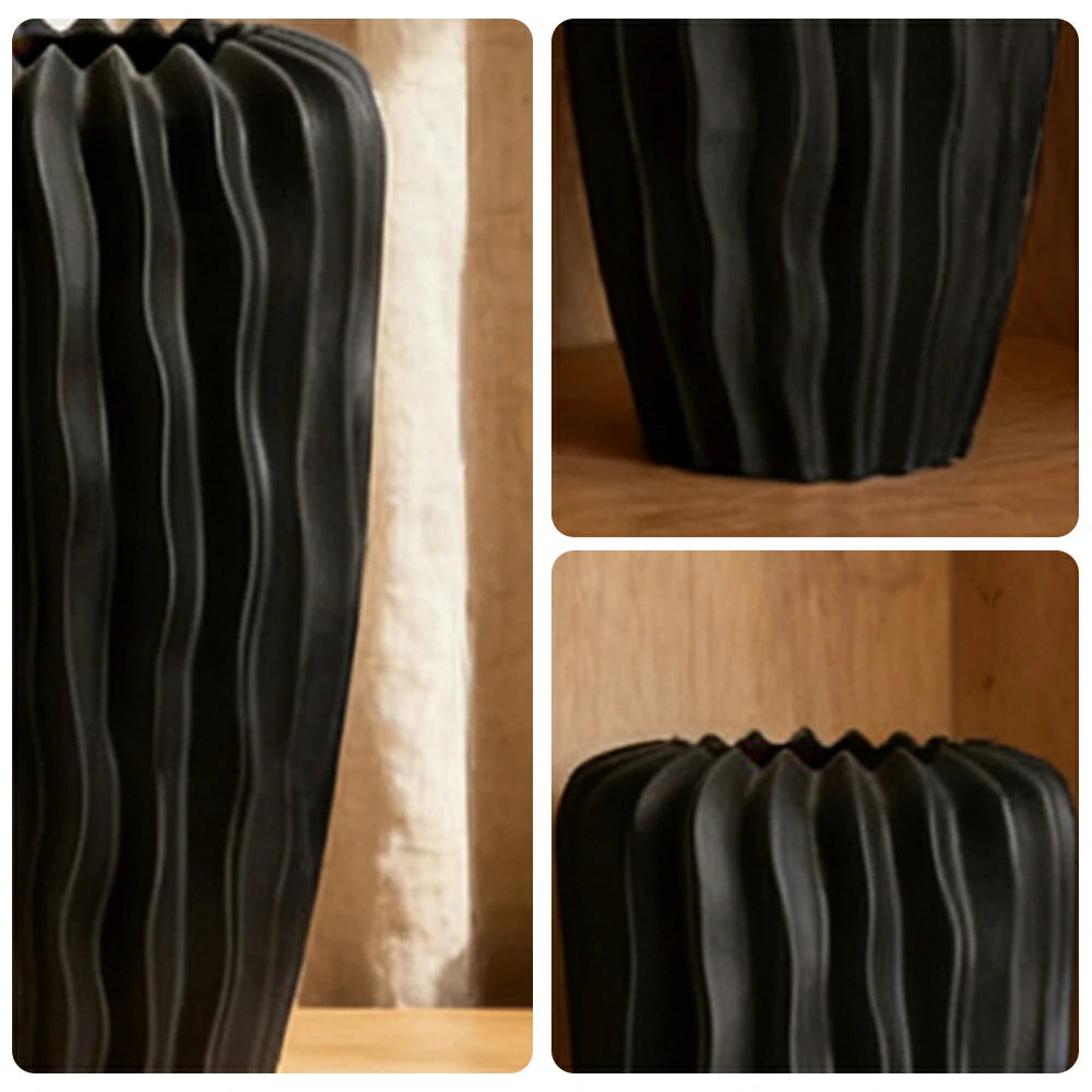 LIVARA Ceramic Decorative Ornament Bana Vase Artistic Display Matte Ceramic Handcrafted Stone-Texture Design - Black
