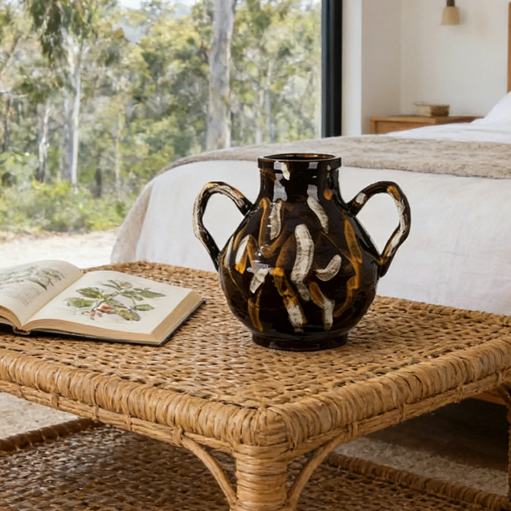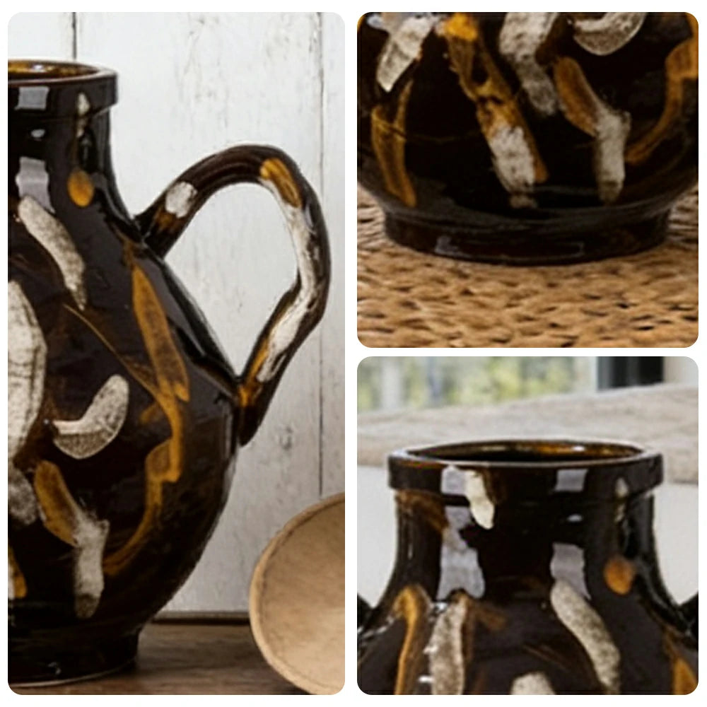 LIVARA Ceramic Decorative Ornament Double-Handle Bulbous Form Artistic Display Matte Ceramic Handcrafted Stone-Texture Design