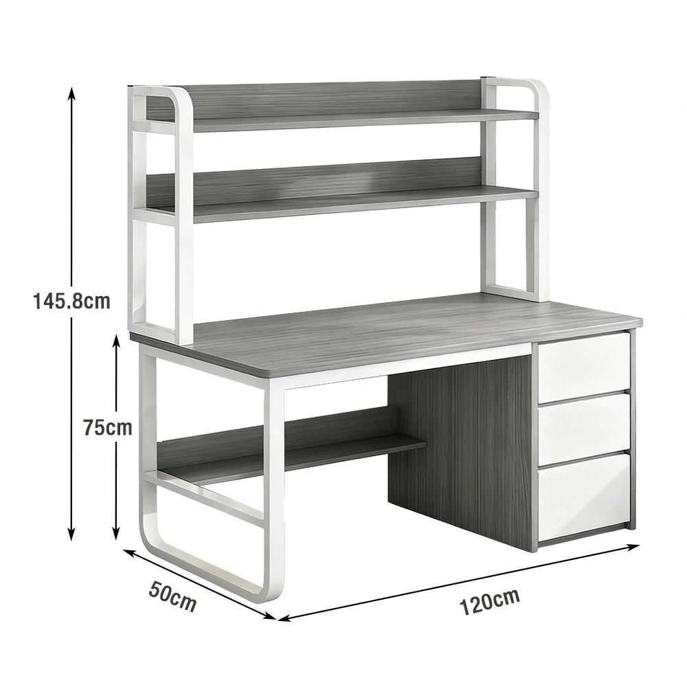 LIVARA Bookshelf Computer Desk 100/120/140cm 2-in-1 Space-Saving Design, Thickened Panels, Steel Frame - Grey