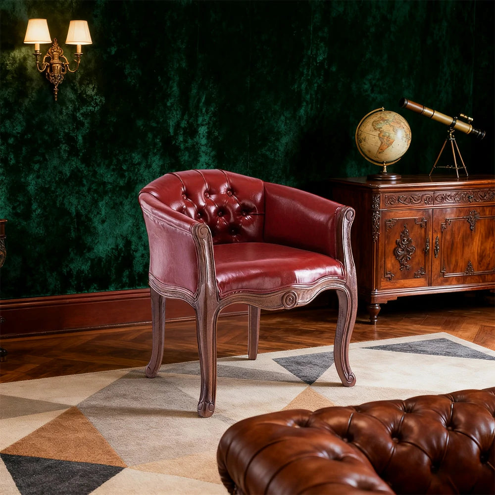 LIVARA Color Patchwork Vintage Accent Armchair - Colorful Patchwork Fabric Upholstery, Solid Wood Frame, Tufted Backrest, Elegant Living Room Single Sofa Chair - Mahogany