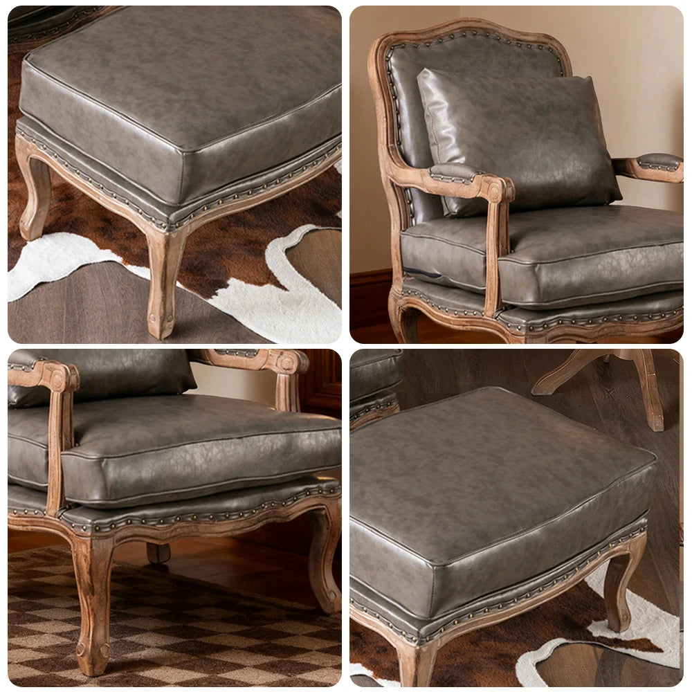 LIVARA Green Orchid Embroidered Velvet Armchair with Matching Ottoman - Soft Velvet Upholstery, High-Resilience Cushion, Solid Wood Frame - Coffee