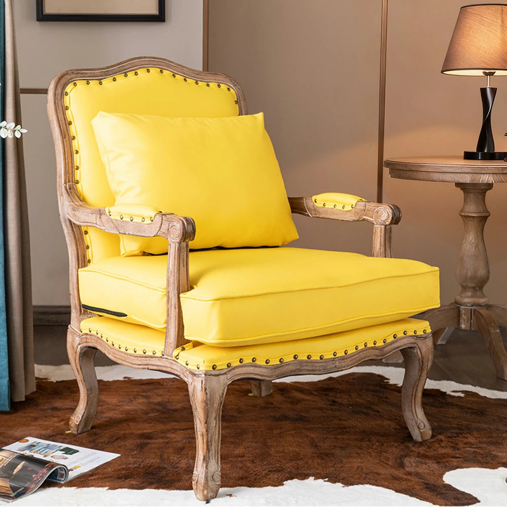 LIVARA Green Orchid Embroidered Velvet Armchair with Matching Ottoman - Soft Velvet Upholstery, High-Resilience Cushion, Solid Wood Frame - Yellow