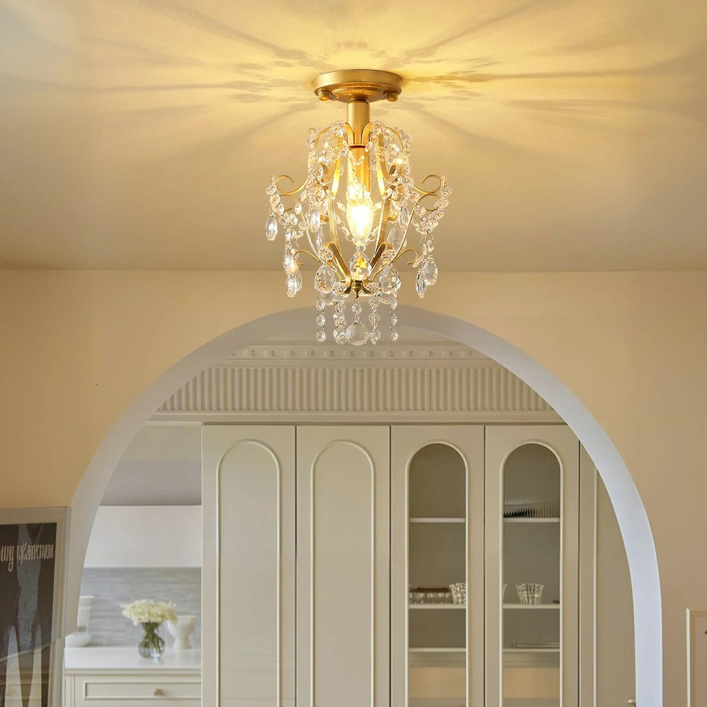 LIVARA Crystal Ceiling Light, E14 LED Flush Mount Lamp with Iron Frame & Hanging Crystal Pendants for Hallway Living Room Bedroom - Gold